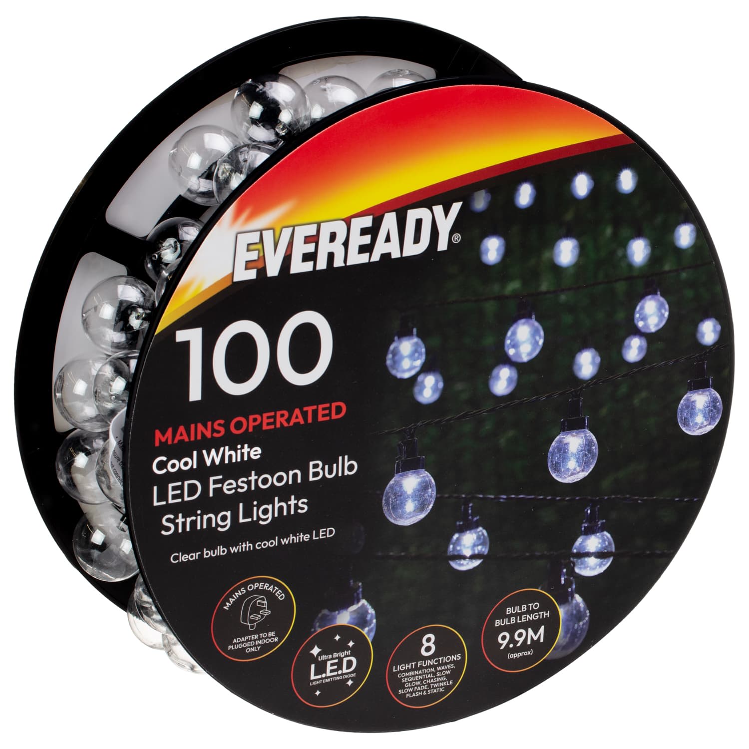 Eveready Mains Powered LED Festoon Bulb String Lights 100pk - Cool White.