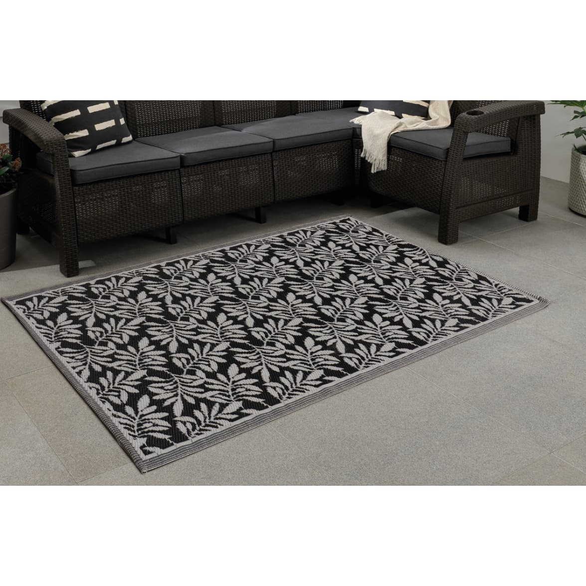 Extra Large Outdoor Rug 1.5 x 2.1m - Black Leaf