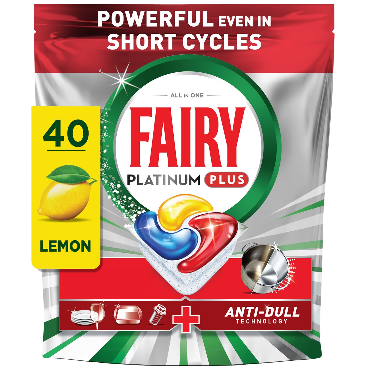 Fairy Platinum Plus Anti Dull Dishwashing Tablets 40pk - Lemon.