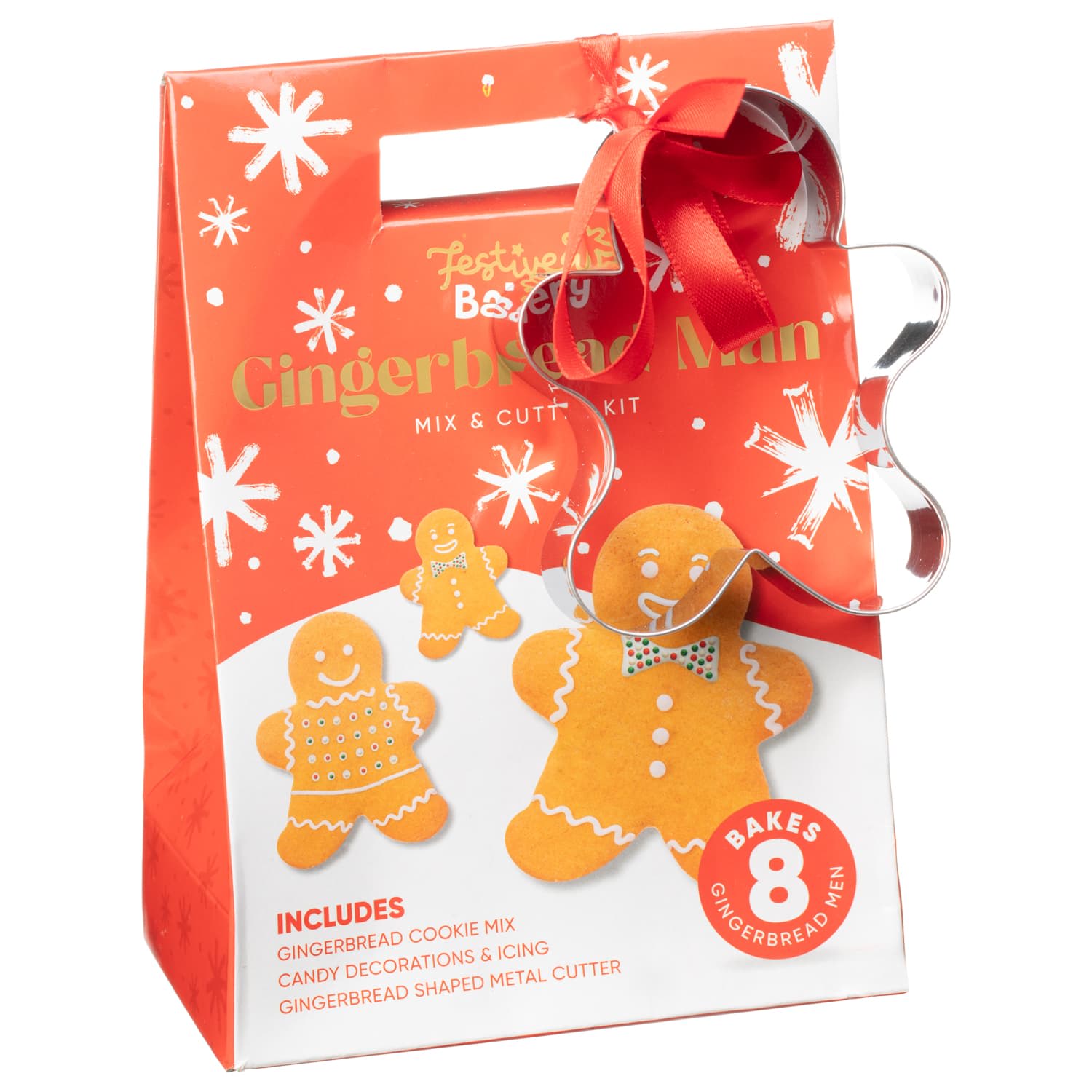 Pack comes with gingerbread cookie mix, cookie cutters and edible decorations!