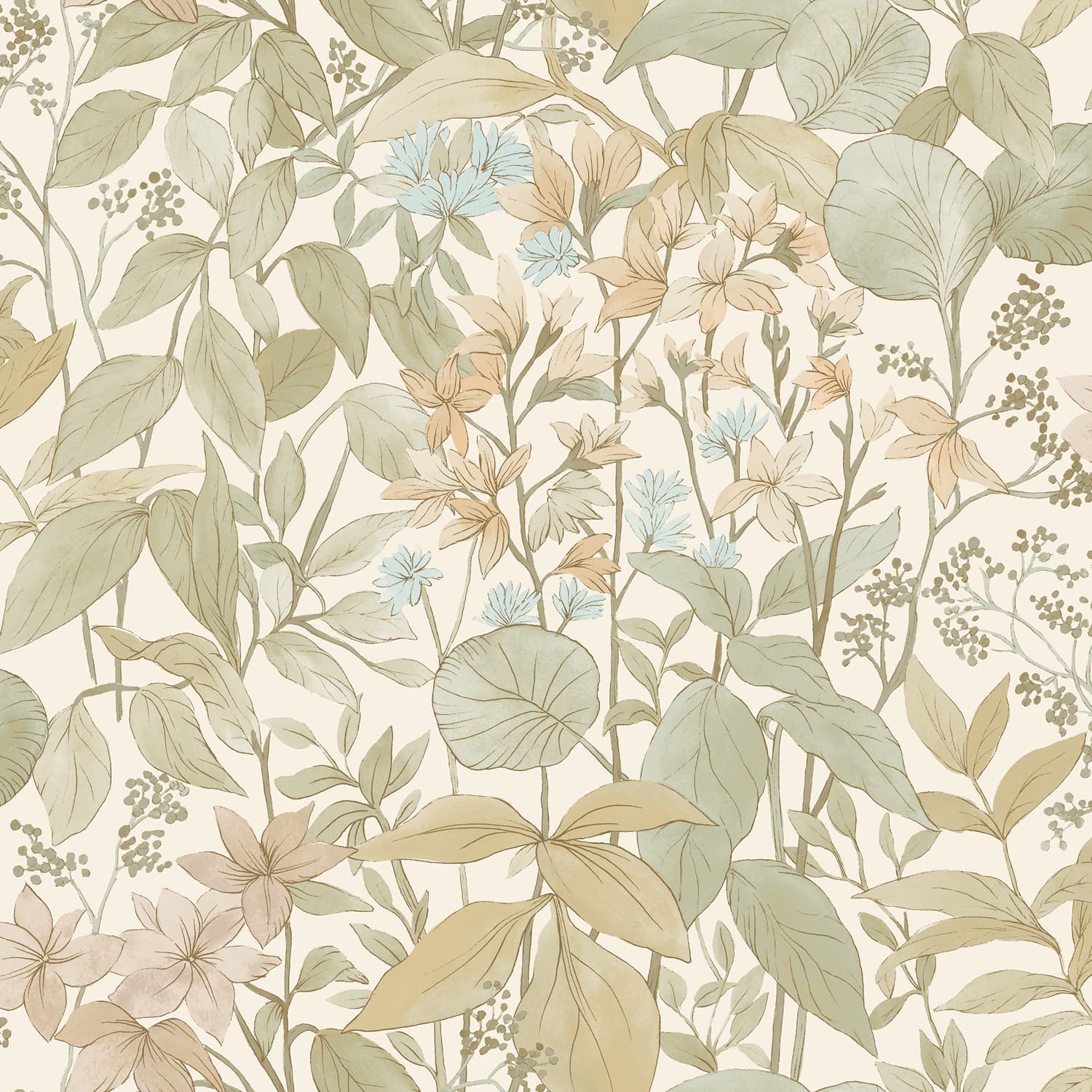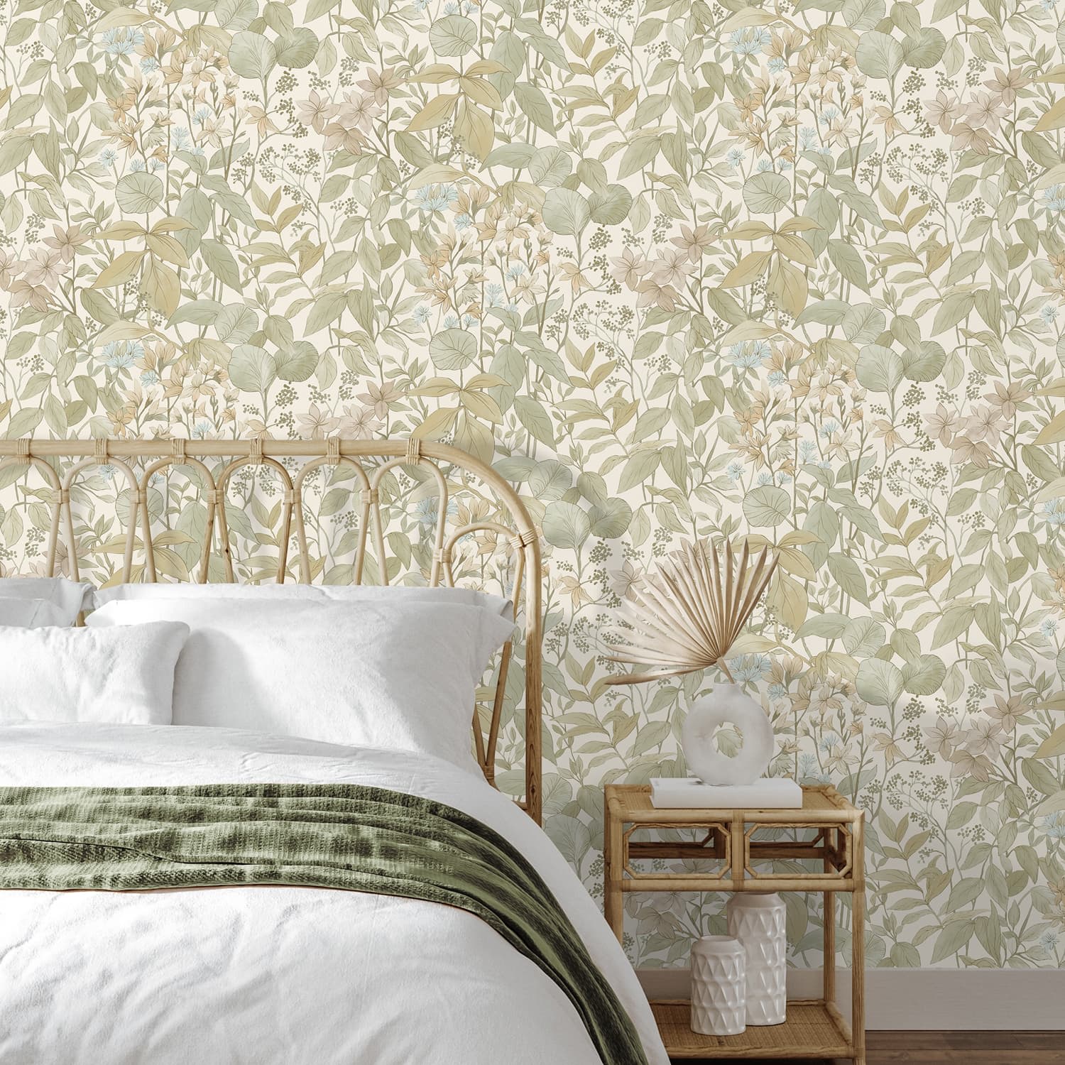 Produced in durable vinyl on a non-woven backing, it combines everyday practicality with timeless botanical style, perfect for creating serene bedrooms, inviting living spaces, or relaced dining areas.