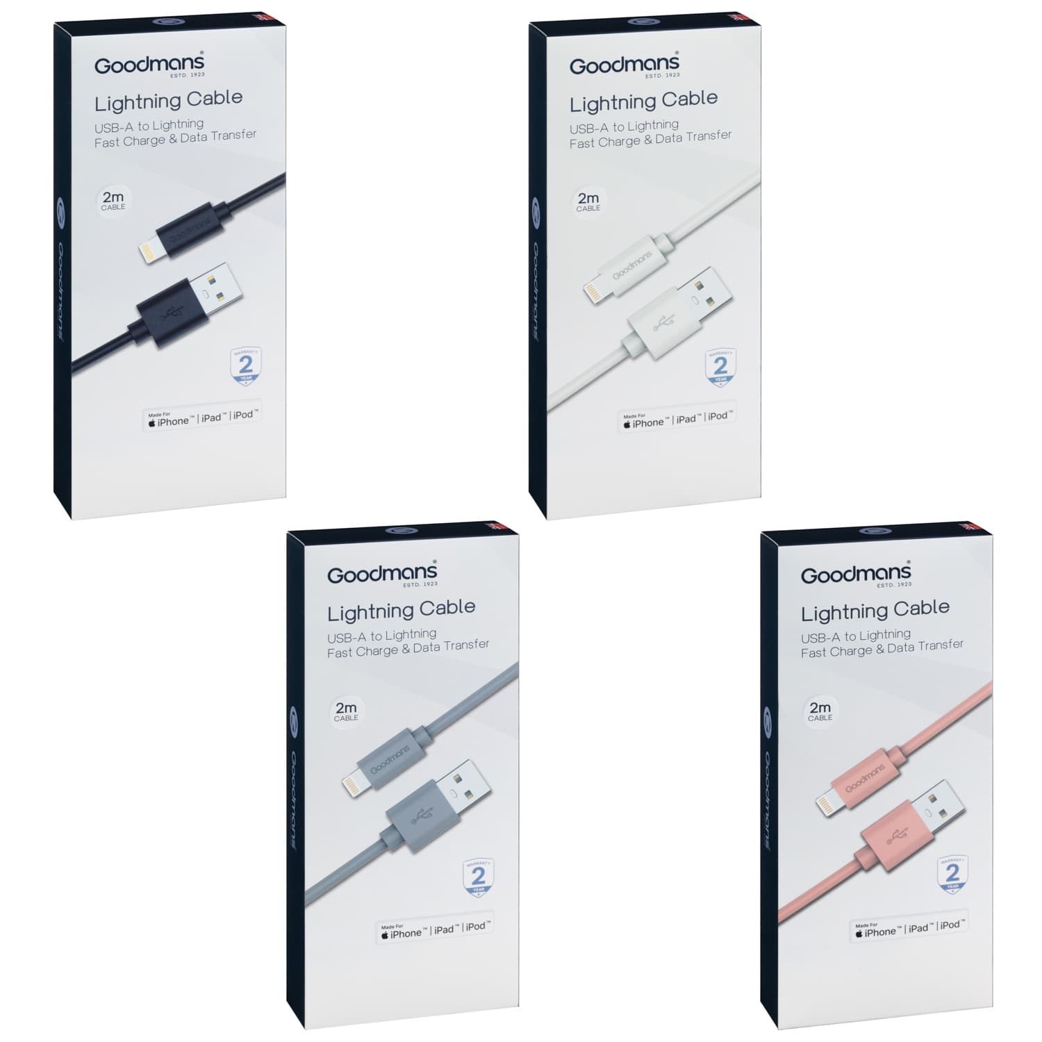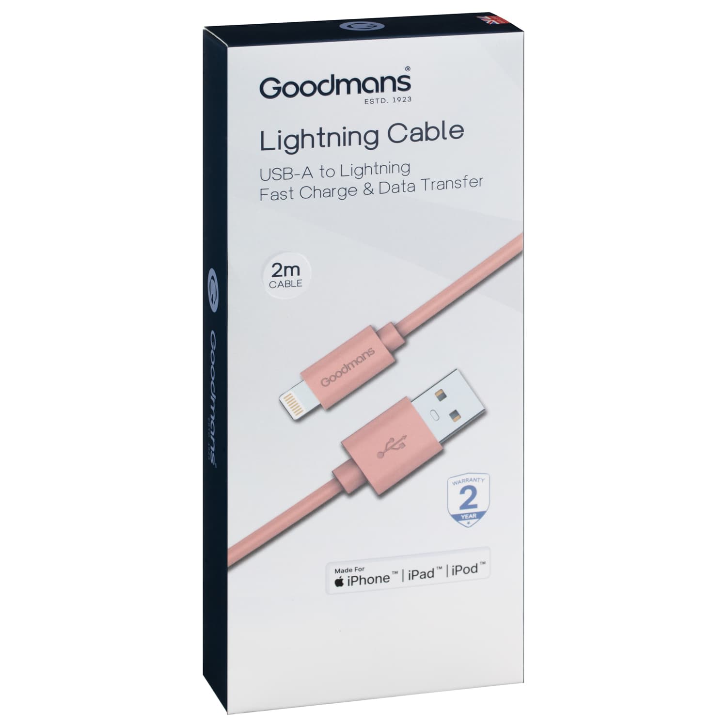 Goodmans Lightning Charge-Sync Cable 2m - Light Pink