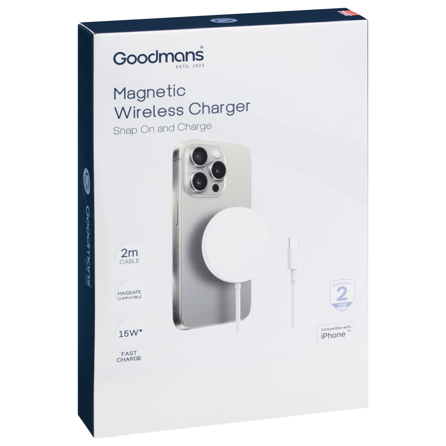 Charge your device quickly and wirelessly at home or work with the Goodmans Magnetic Wireless Charging Pad.