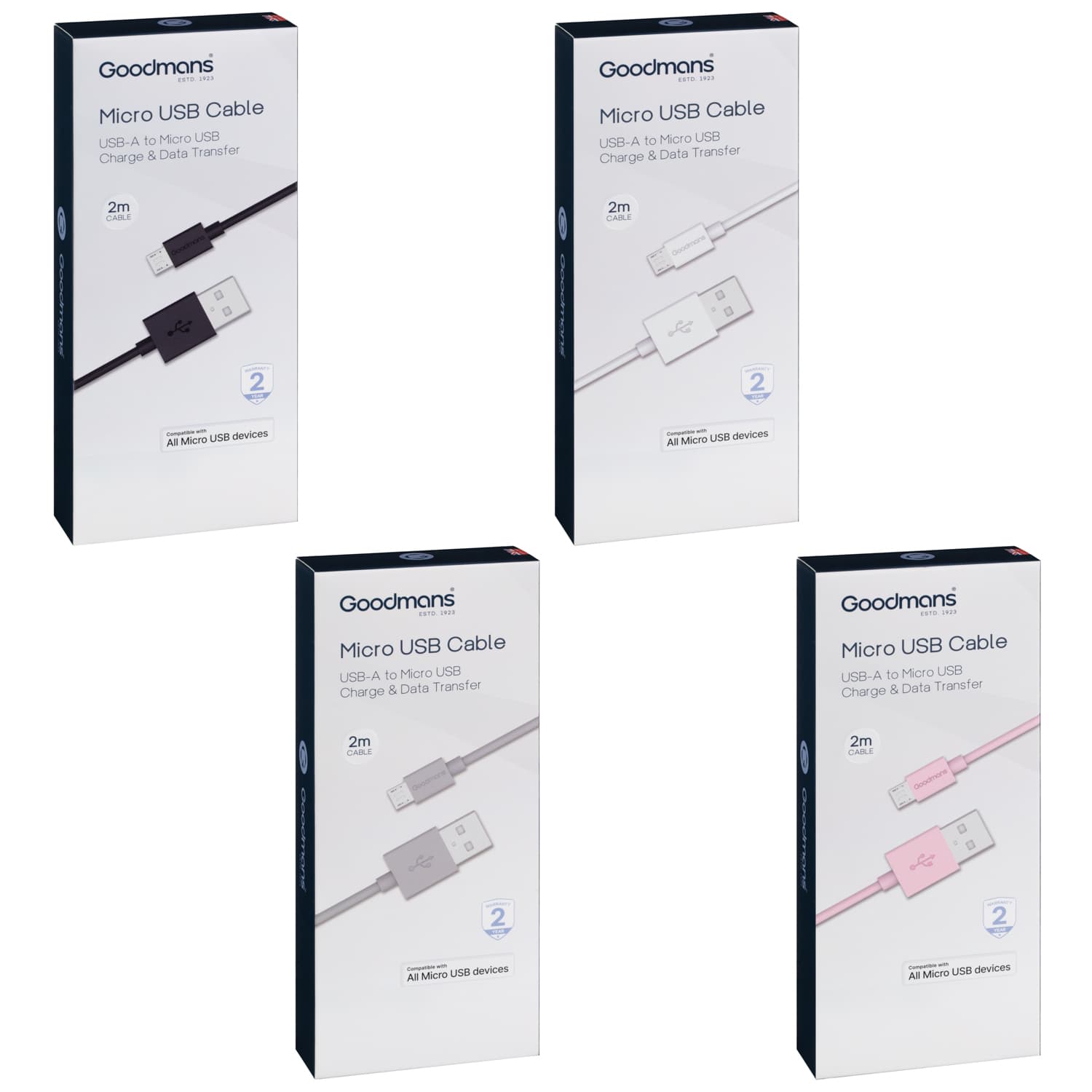 Goodmans Micro USB Charge-Sync Cable 2m - Light Pink