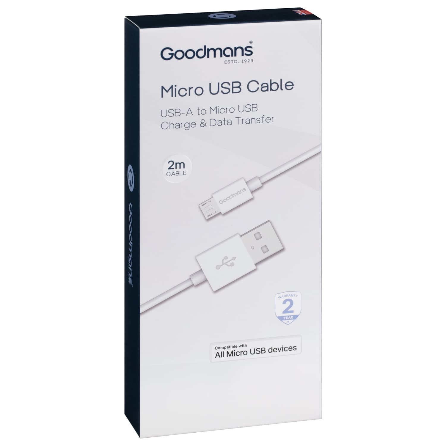 Goodmans Micro USB Charge-Sync Cable 2m - White