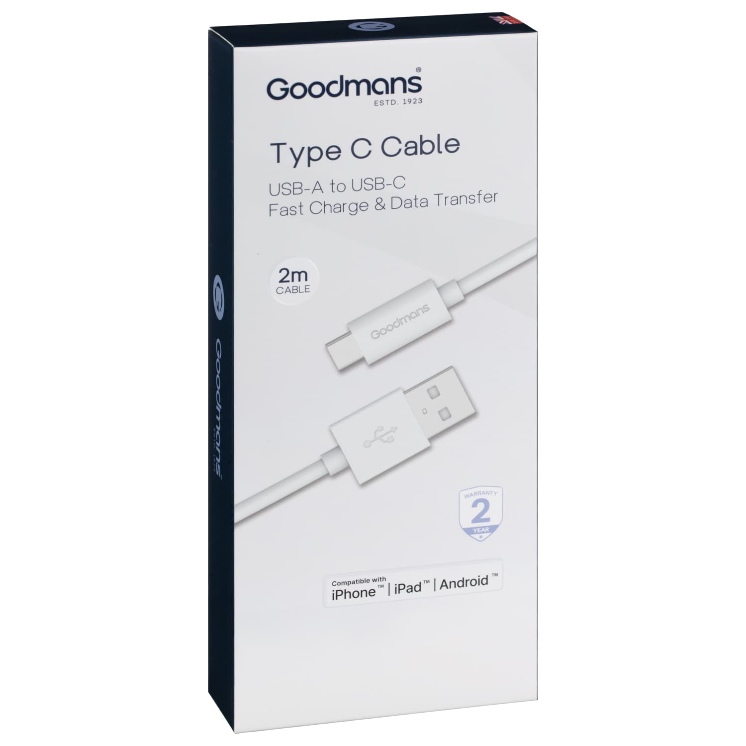 Goodmans Type C Charge Cable USB-C to USB-C 2m - White.