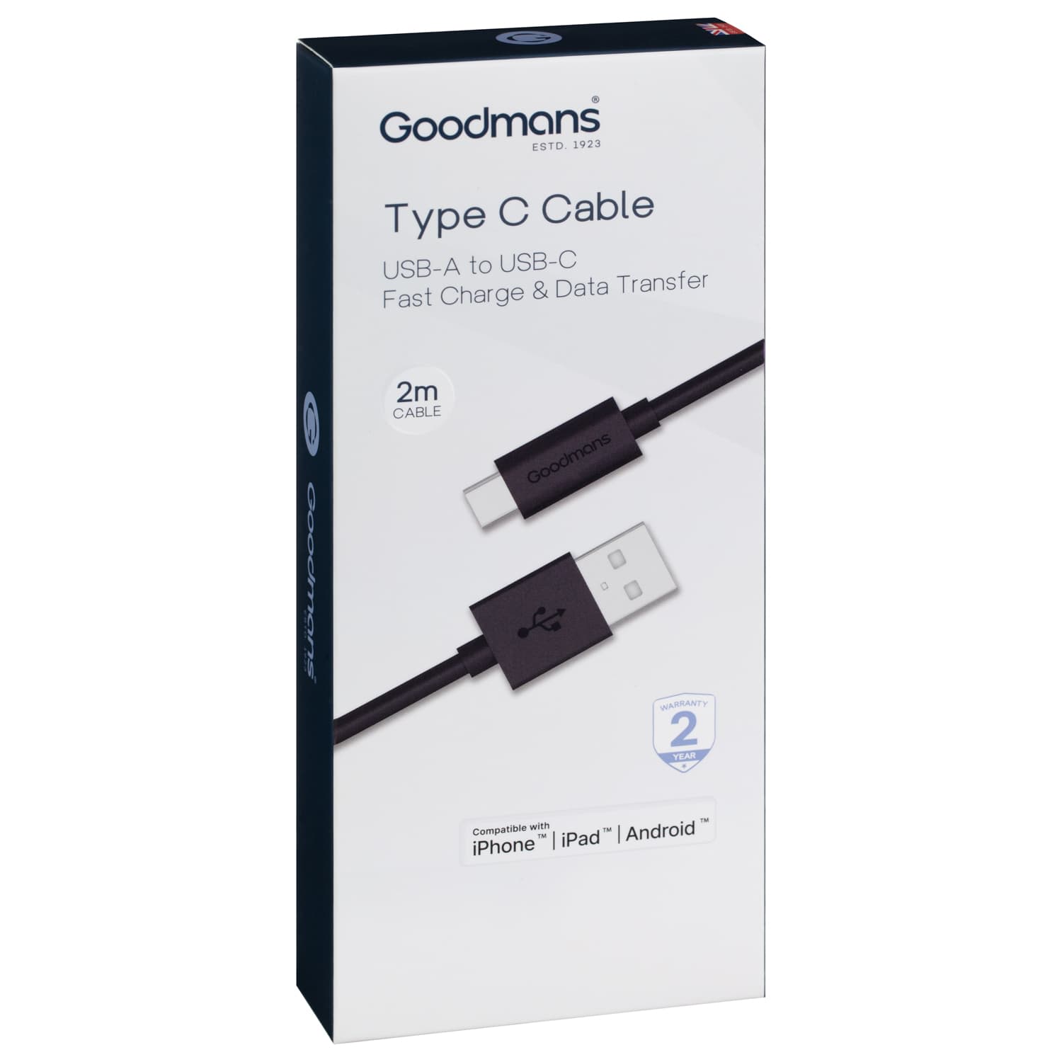 Goodmans Type C Charge-Sync Cable 2m - Black