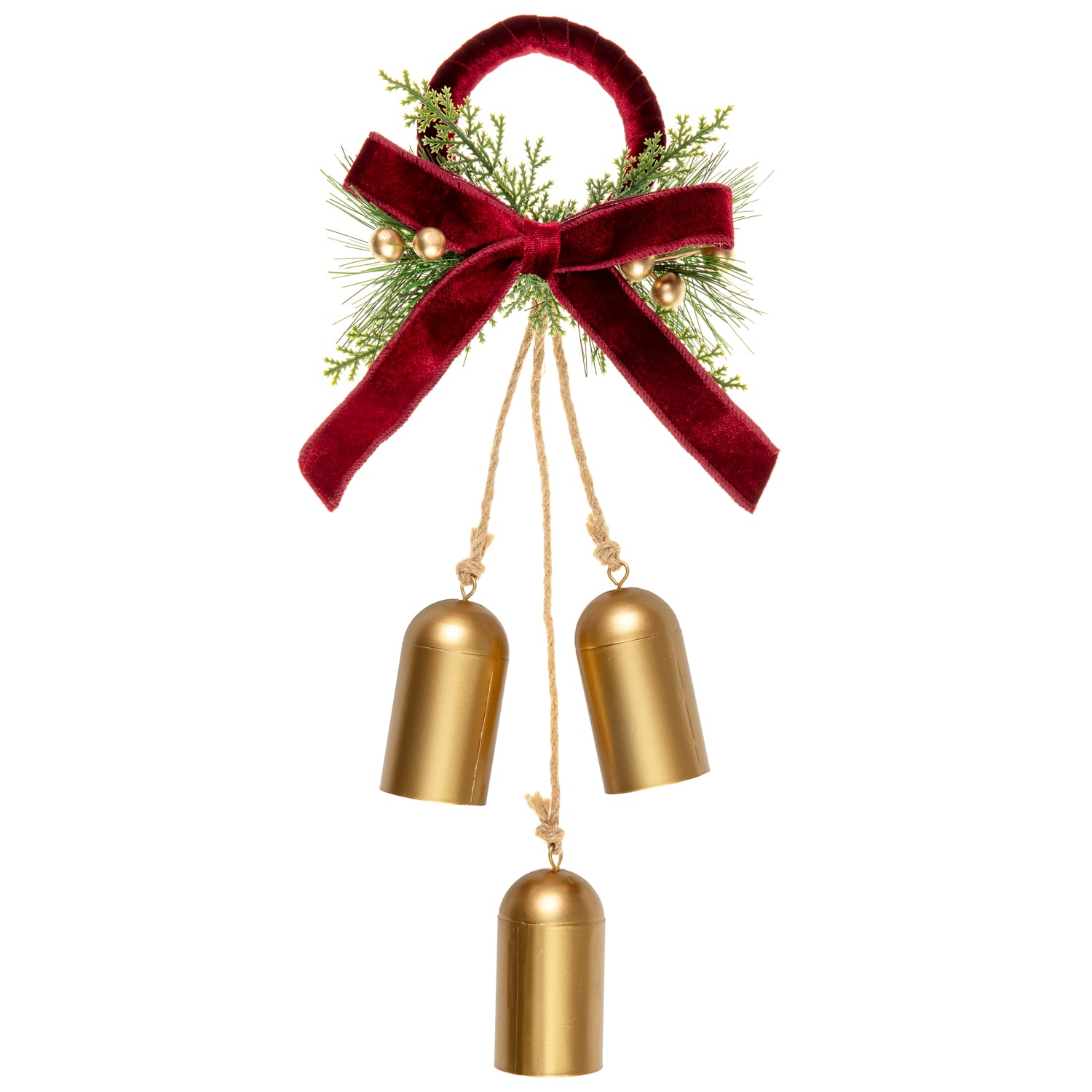 Deck the halls with this gorgeous traditional Hanging Gold Bells with Bow Ornament