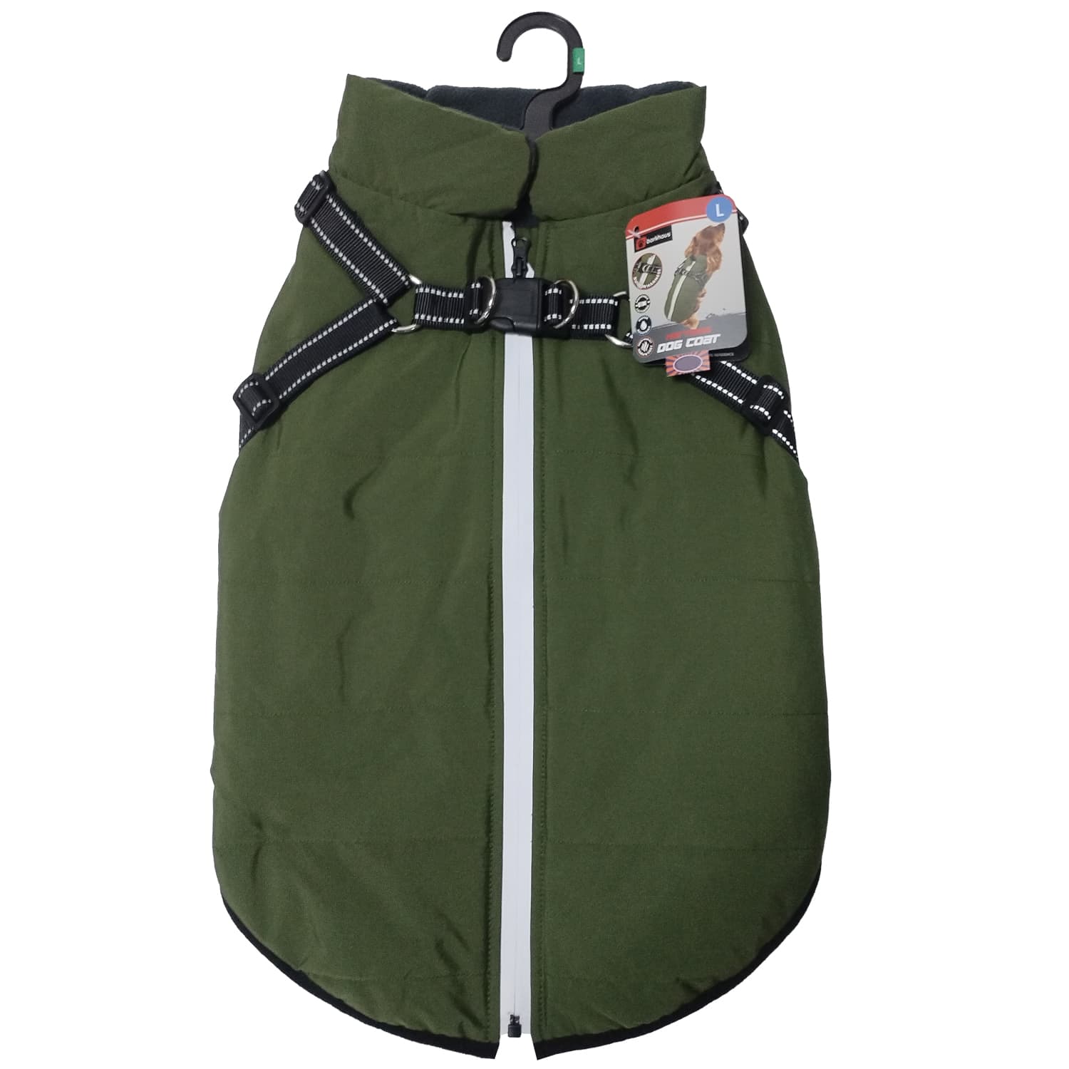 It provides excellent insulation against cold and wet weather. The built-in adjustable harness with secure buckles and reflective detailing ensures both safety and ease of use—no need for a separate harness. The front zipper closure allows for quick dressing and removal, while the snug fit offers full mobility for your dog.