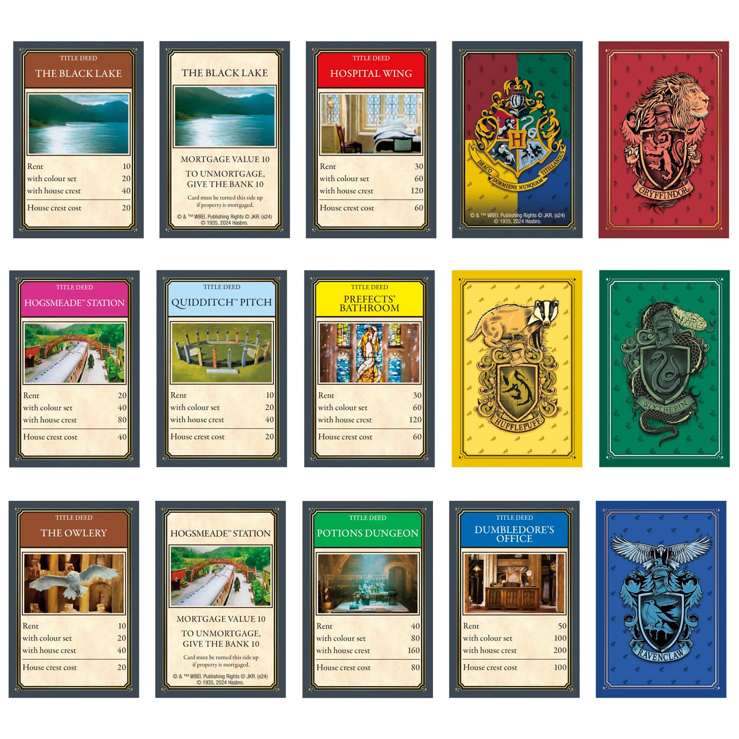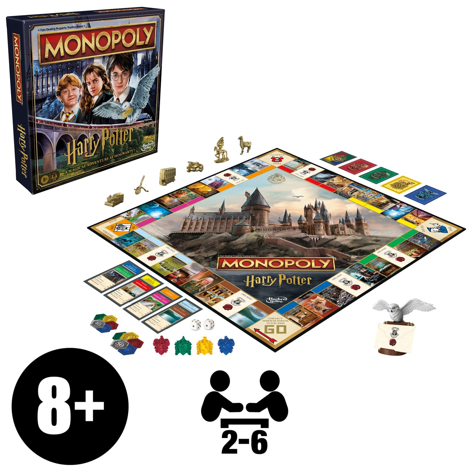 In this Harry Potter edition of Monopoly, you'll play as a student at Hogwarts, players pick one themed golden ticket and one House Card to be sorted into their House. House Points and Locations around Hogwarts Castle and Hogsmeade Village replace Monopoly Money.