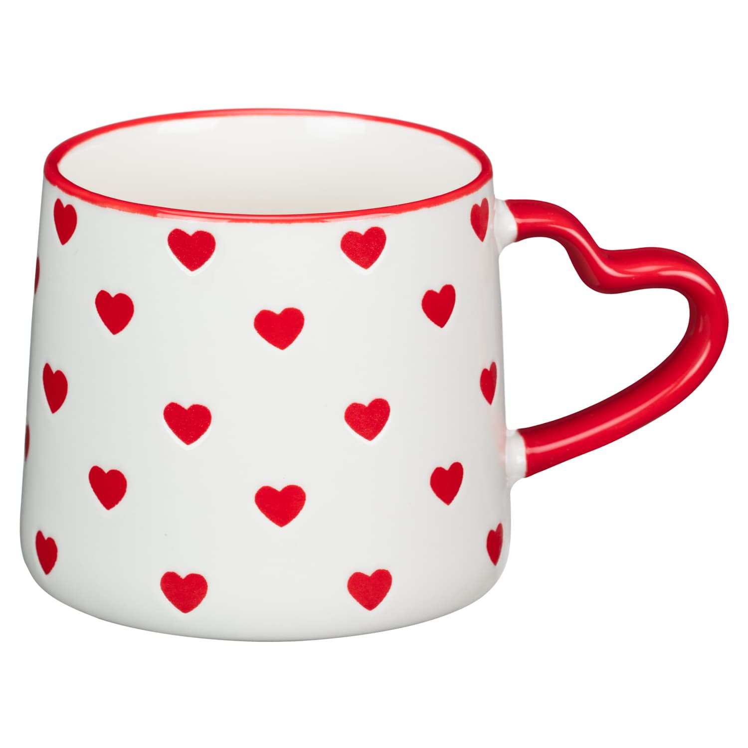 Featuring a red love heart pattern design and a heart shaped contrasting handle, this mug is perfect for serving up their favourite hot drink alongside their Valentine's Day breakfast.
