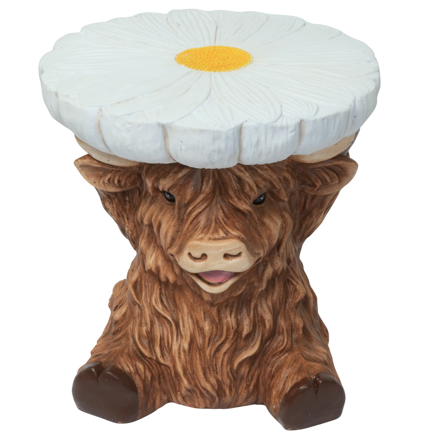 Add character and charm to your outdoor space with this Highland Cow Plant Stand.