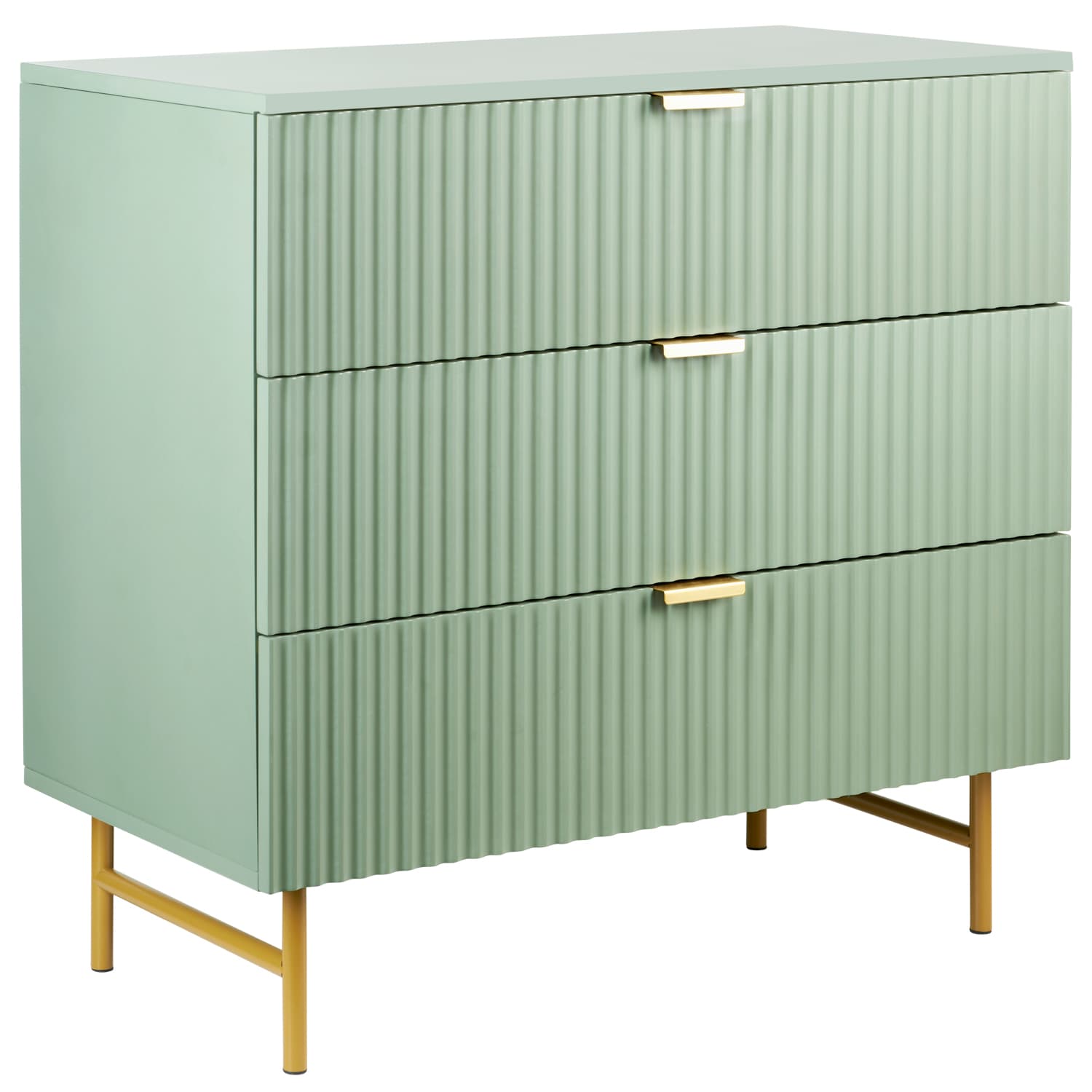 Finished in a soothing sage tone with panel texture, this cheat of drawers is the perfect compliment for modern bedrooms.