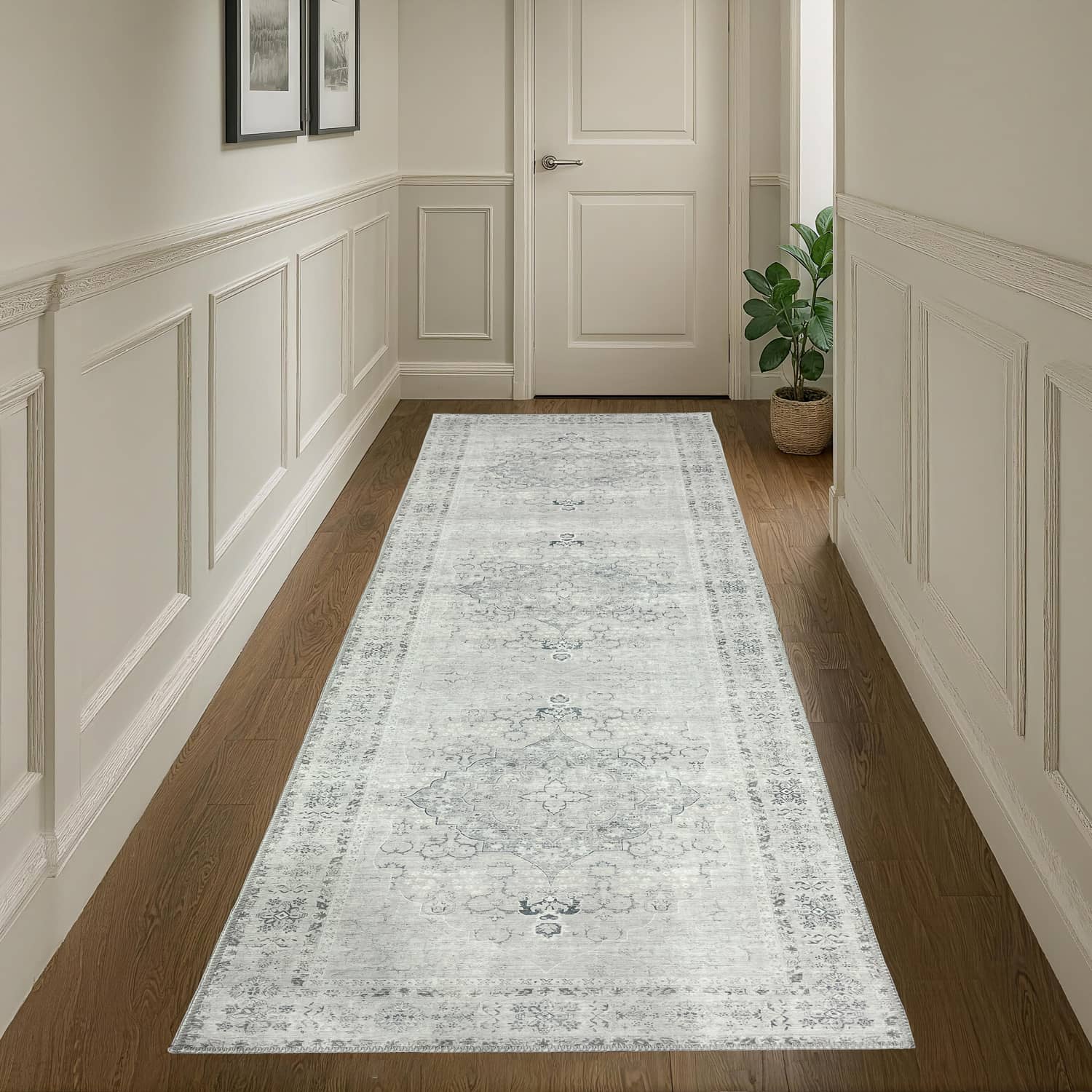 Featuring a vintage inspired design in a soft shade of cream, this runner is the perfect addition to hallways, kitchens, and areas with high foot traffic.