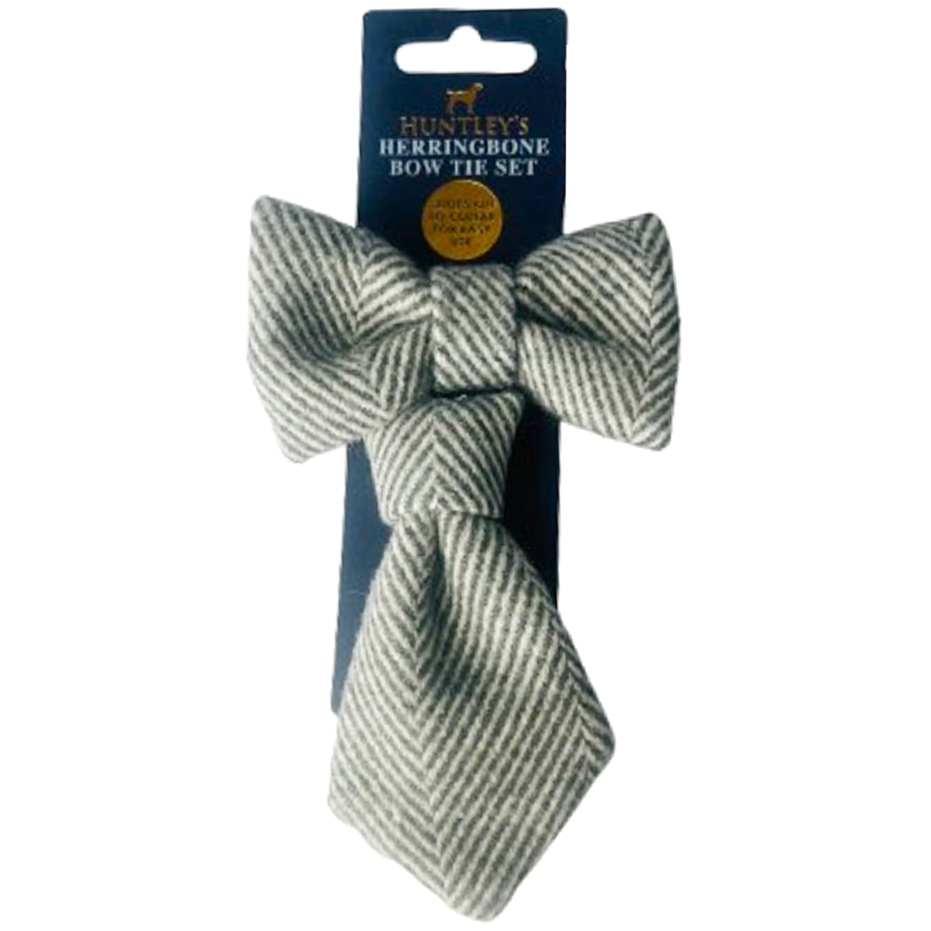 A refined and stylish accessory set for your furry friend, featuring a bow tie and normal tie in a classic herringbone pattern.