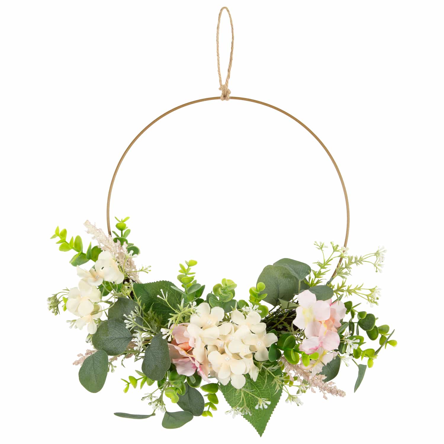 Hydrangea and Eucalyptus Hoop Wreath.