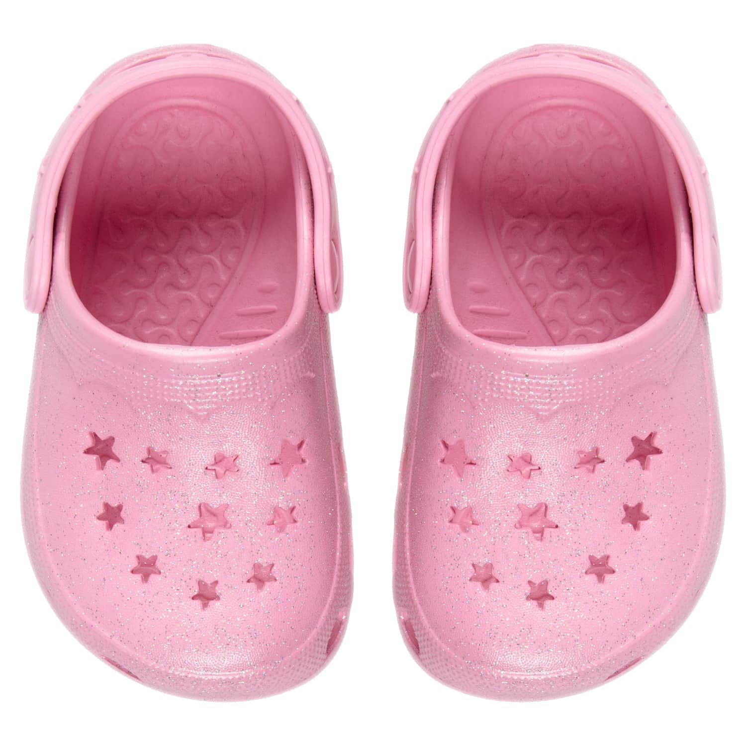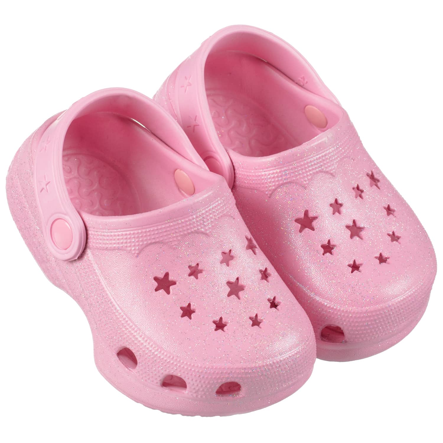 Adorable kids' shoes in traditional clog design. Great for covering and protecting their feet while they play, with star cut-outs on the toe cap giving them a fashionable feel.