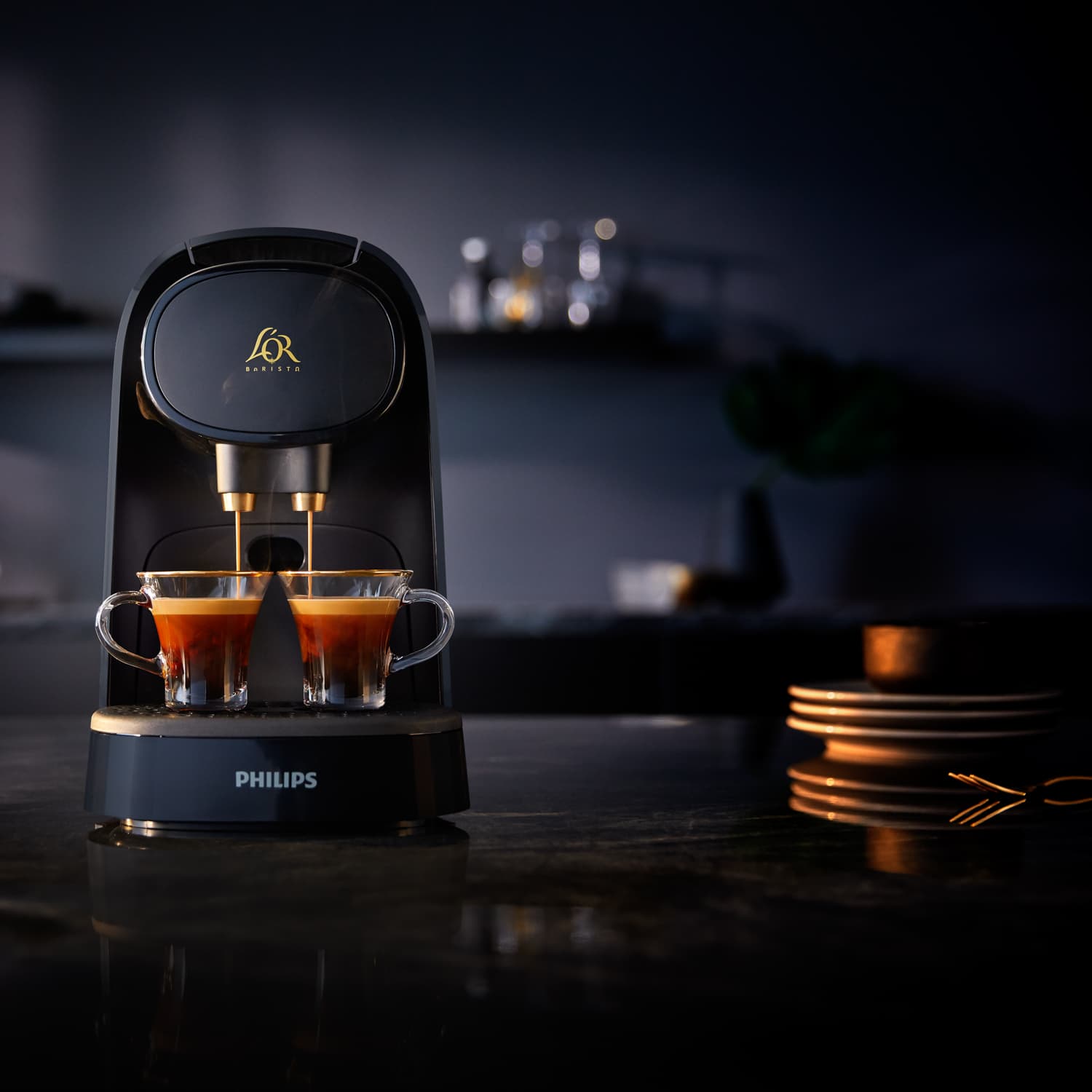 DOUBLE SHOT, DOUBLE PLEASURE. Double your coffee pleasure by brewing two single espressos at once or a double espresso in one cup, with the exclusive L'OR barista double shot system.