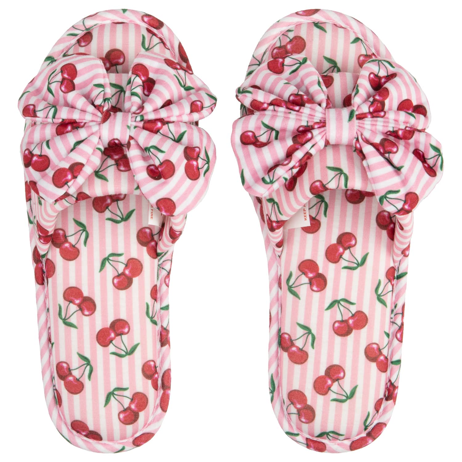 Ladies Cherry Print Open-Toe Slippers - Sizes 3-8