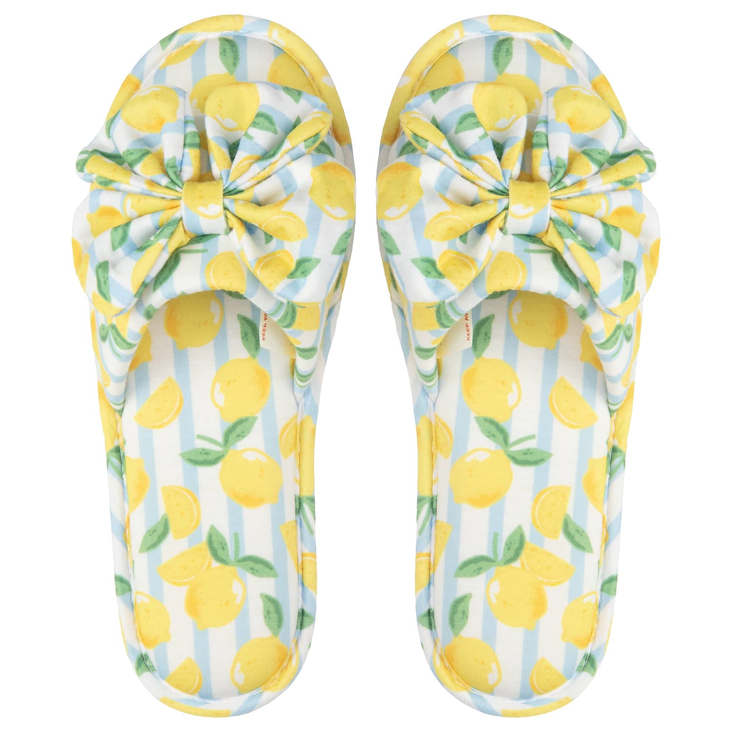 Ladies Lemon Print Open-Toe Slippers - Sizes 3-8