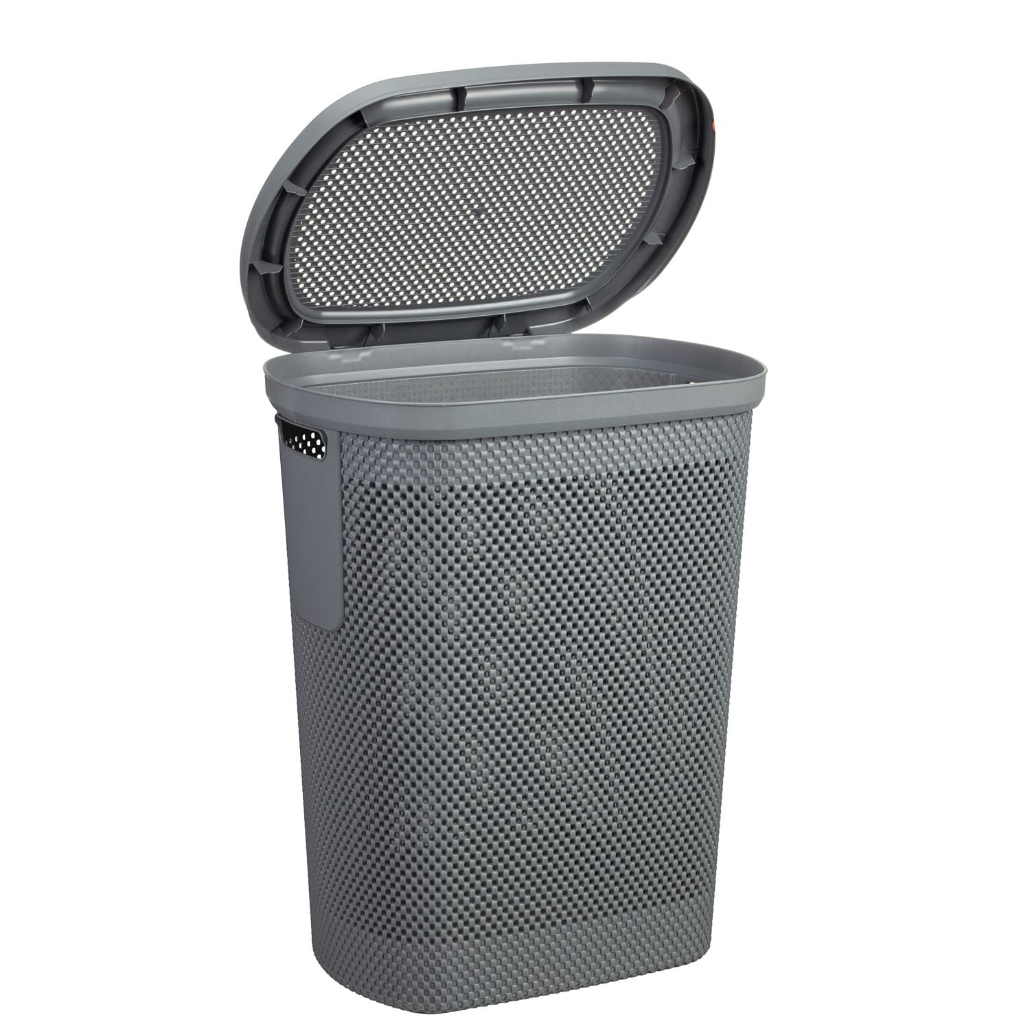 Lid is fixed in place, keeping unwashed clothes out of sight.