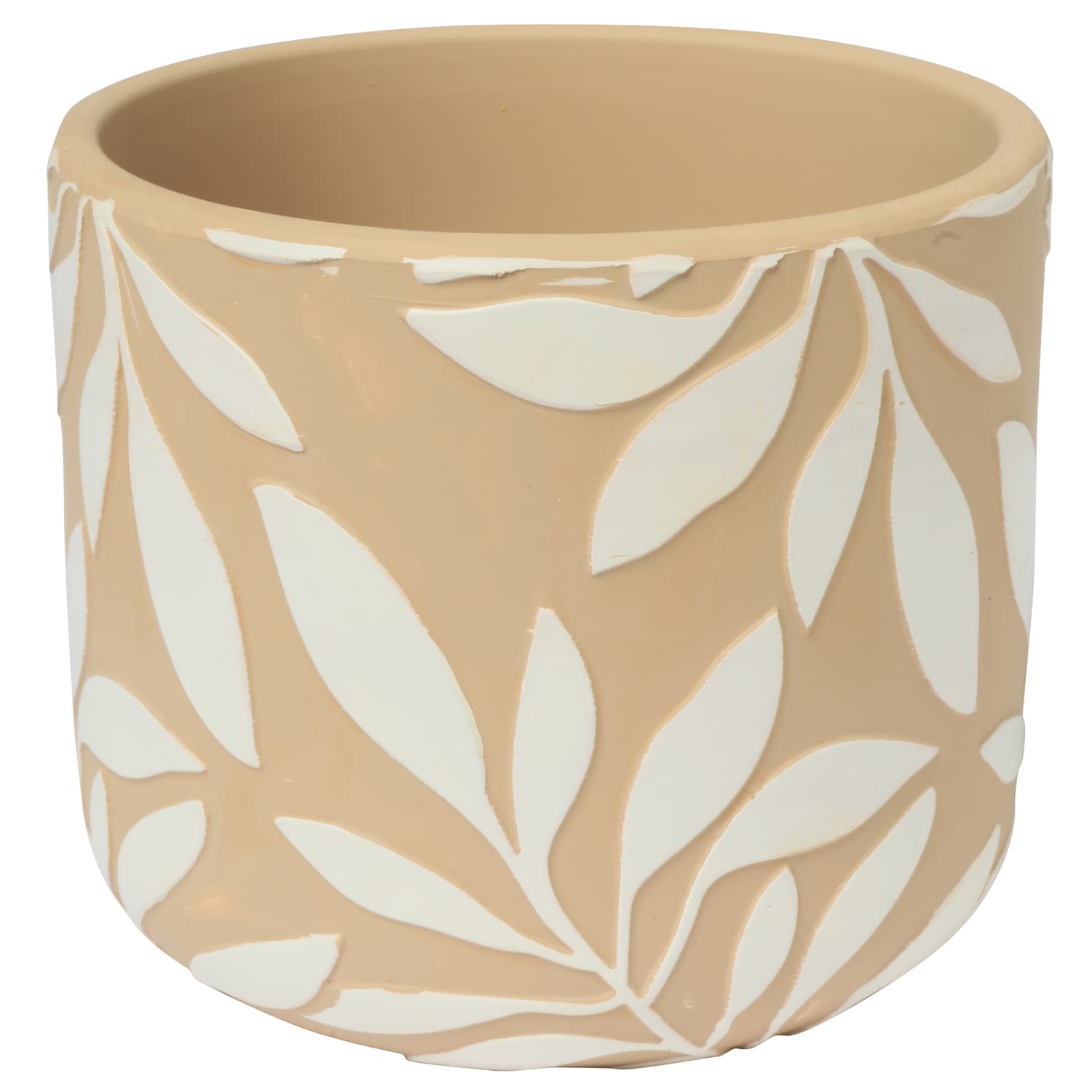 Featuring neutral tones and a detailed leaf print design, this planter is perfect for your favourite plants, foliage, and flowers.
