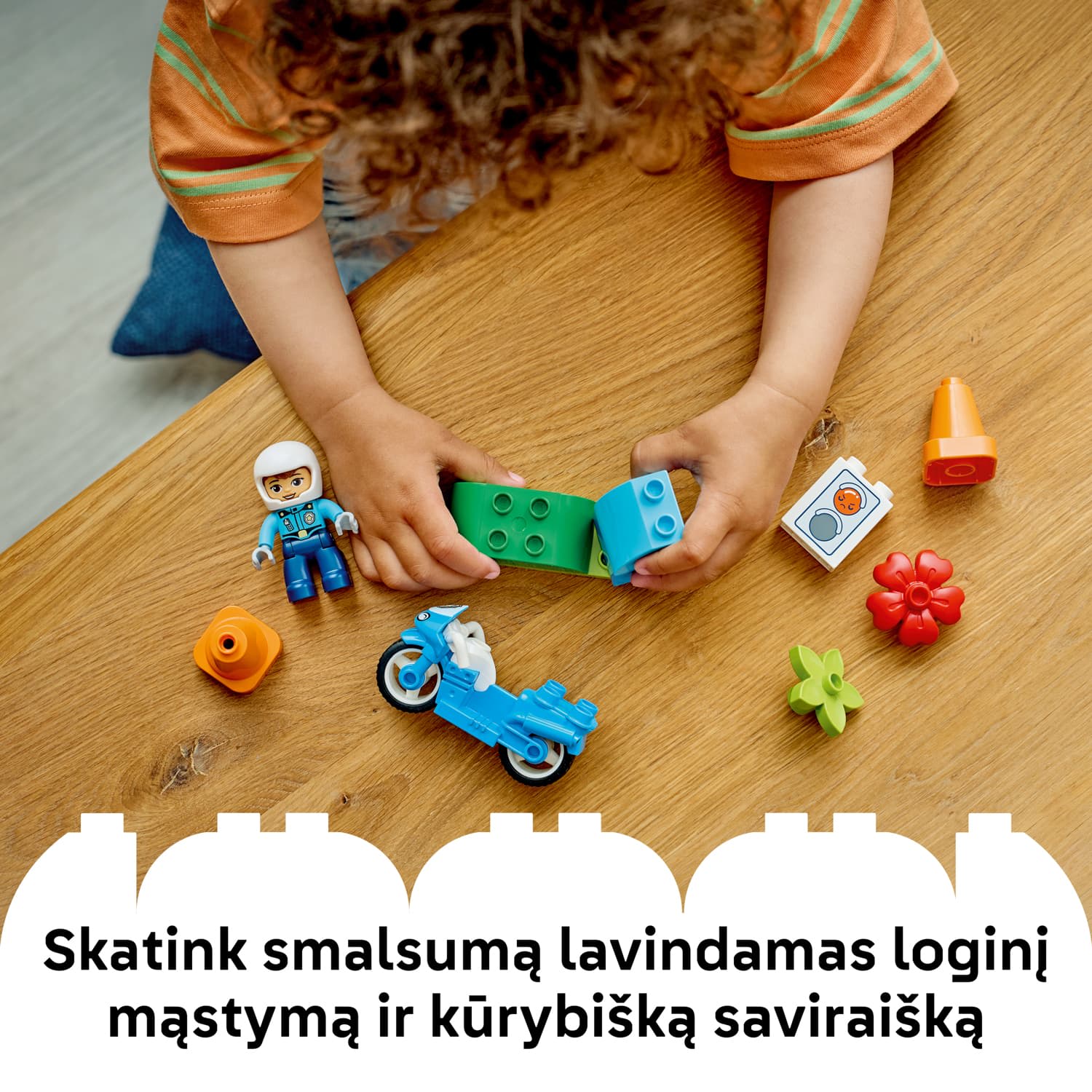Bring fast fun to the playtimes of kids with the LEGO DUPLO Town Blue Police Motorcycle (10471) playset. This educational toy for 2+ year old boys and girls lets toddlers pretend-play community-helper stories as the police officer sets off to patrol the roads on her cool LEGO DUPLO motorbike toy.