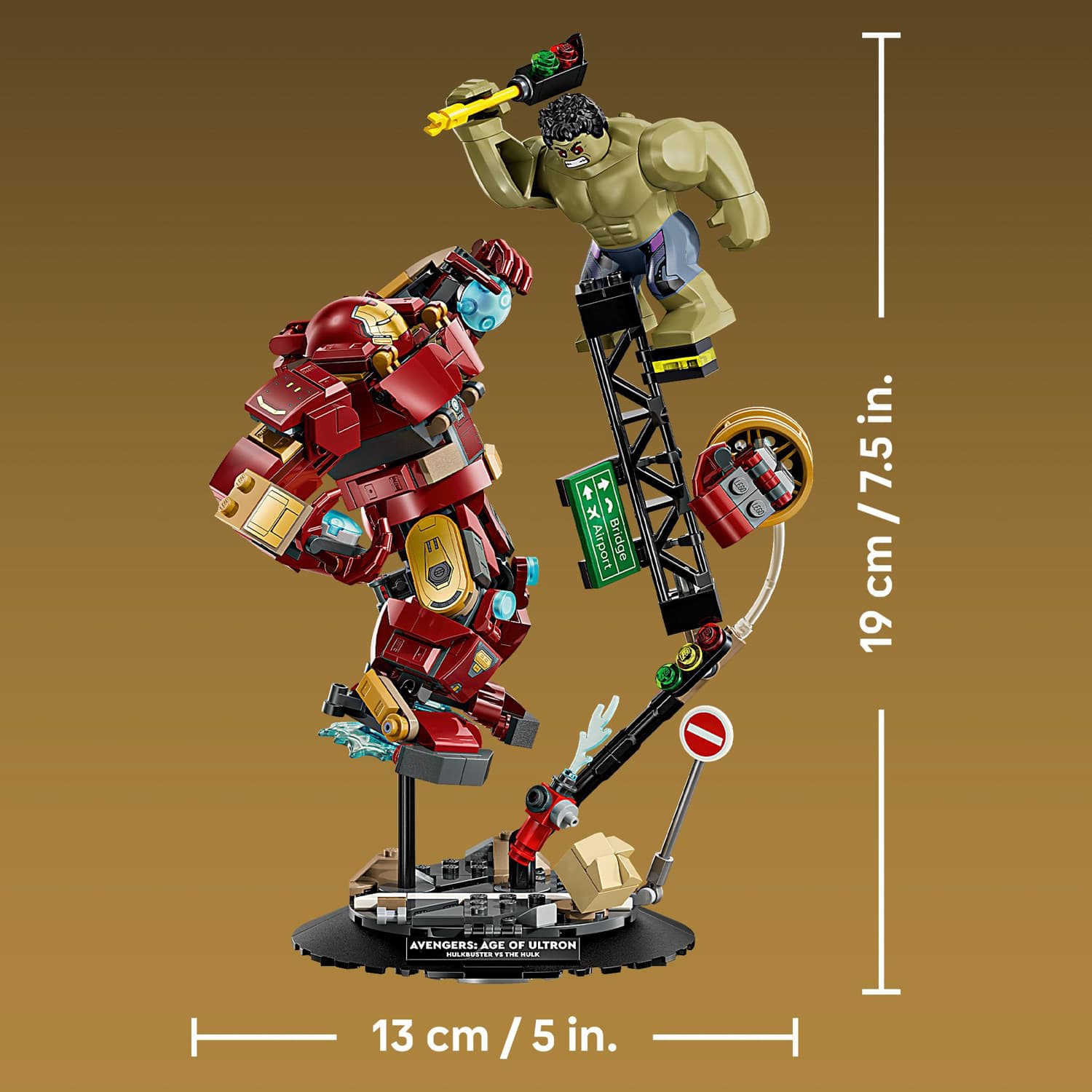 With this buildable Marvel toy, kids can help Iron Man battle Hulk, with the help of his Hulkbuster armour, amid a street scene filled with debris, collapsing steel structures and a traffic light, which Hulk can use as a weapon. The Hulkbuster LEGO Marvel figure is fully jointed to maximise posability. With a sturdy base and nameplate, kids can use their model as room decor or detach the minifigures to create Super Hero adventures of their own.