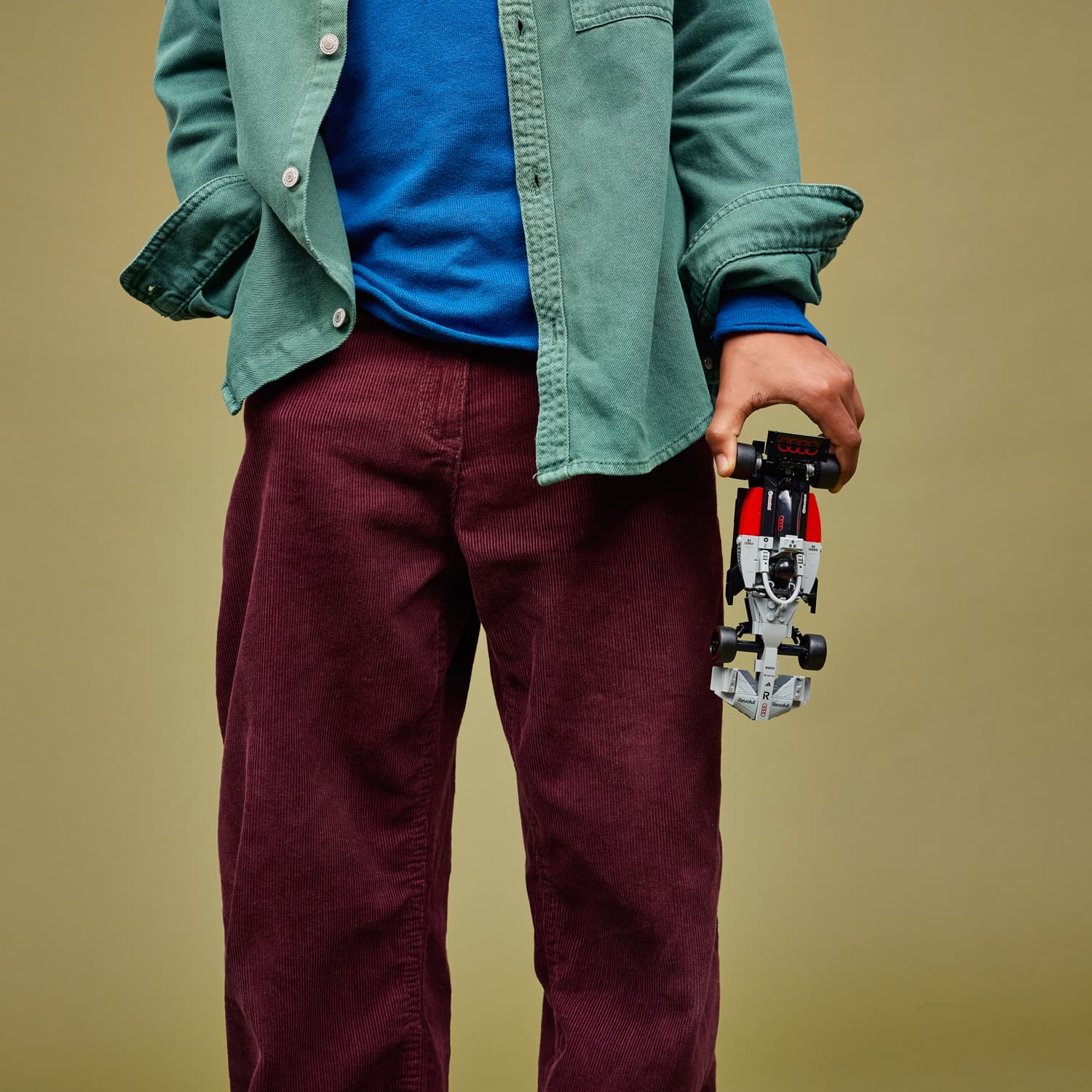 This Audi Revolut F1® Team R26 Race Car toy features a cockpit, rear wing, authentic sponsor logos, front wheel suspension and tyres imprinted with “Pirelli”. The toy vehicle also comes with a minifigure in an Audi Revolut F1® Team outfit and a helmet to place inside the cockpit and stage races.