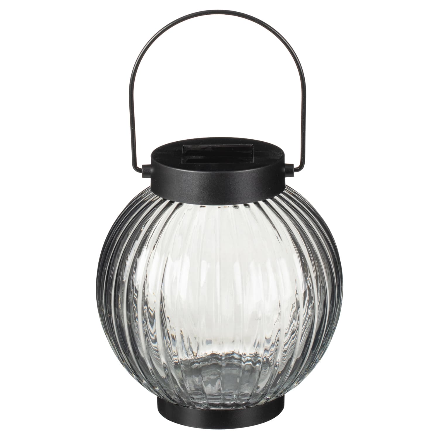 Mason & Jones Solar Powered Ribbed Glass Lantern - Black.