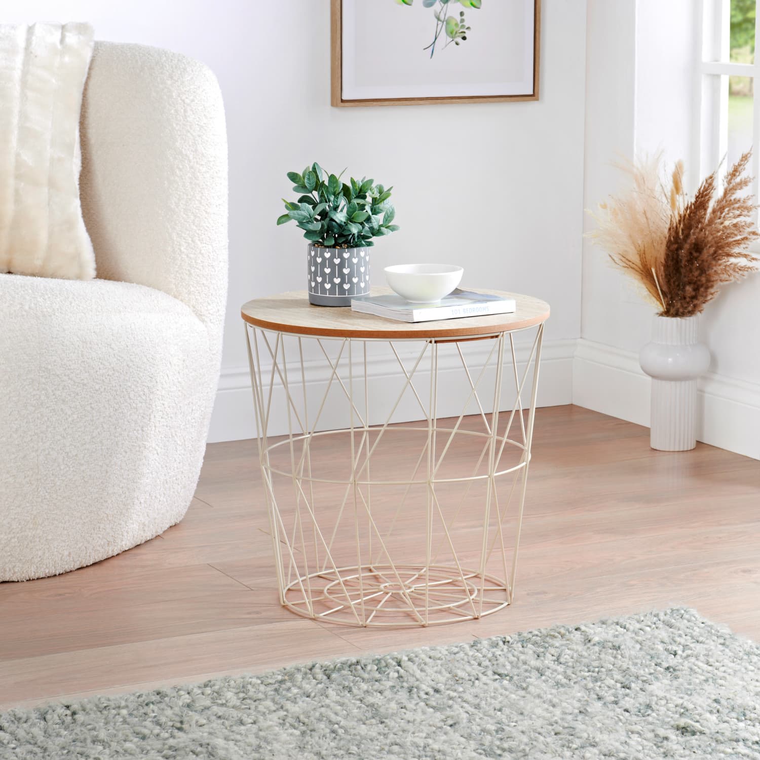 Add some style and unique storage to your living room with this fabulous Michigan Basket Side Table.
