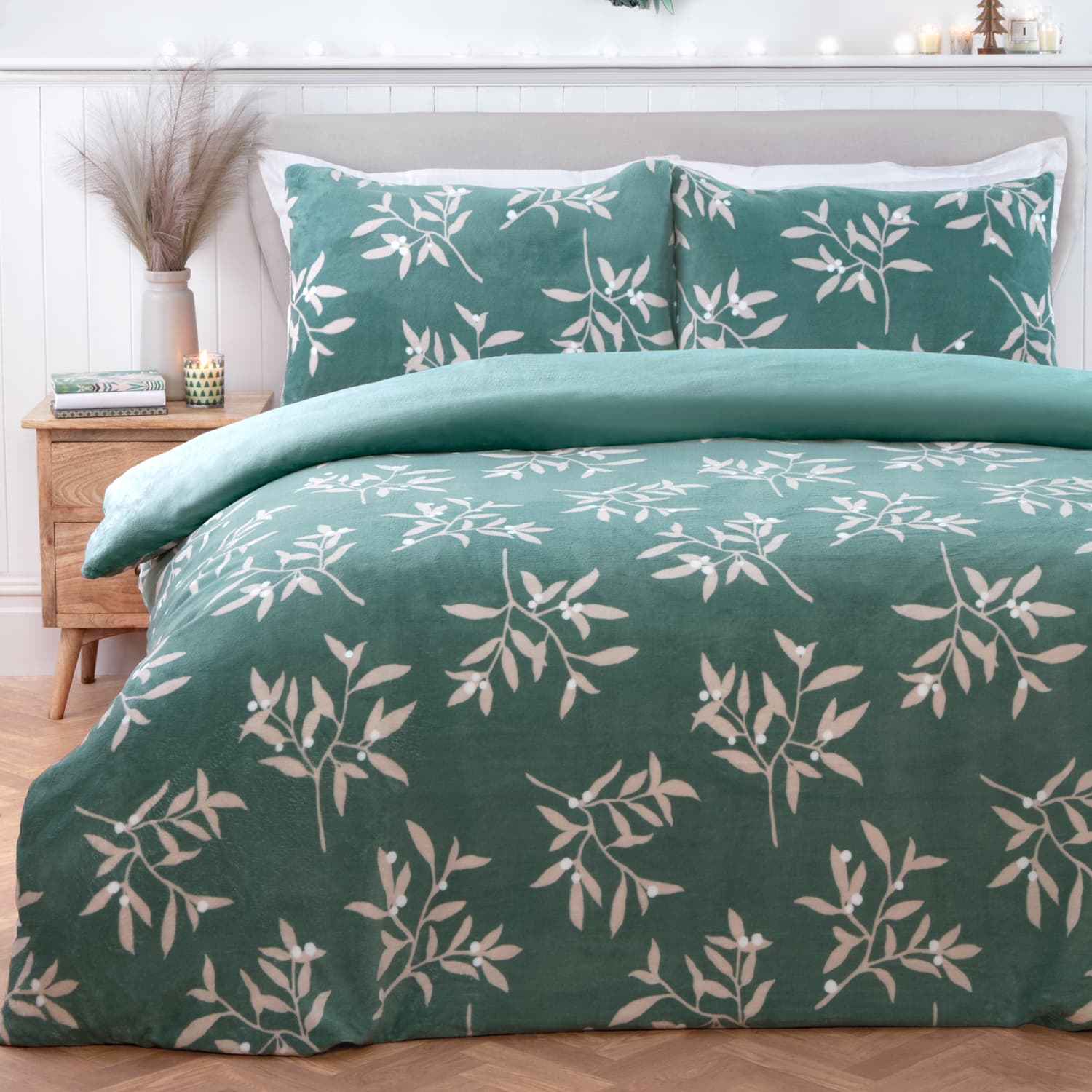 Indulge in the luxury of supersoft bedding with the Mistletoe Printed Duvet Set.