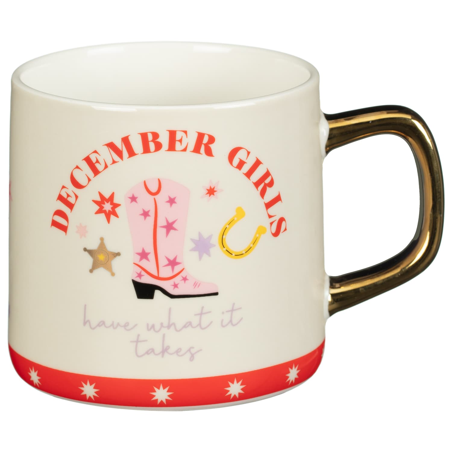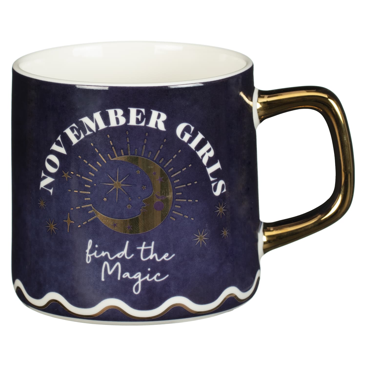 Each mug features a unique, vibrant graphic and a fun slogan, celebrating the qualities and quirks of every birth month.