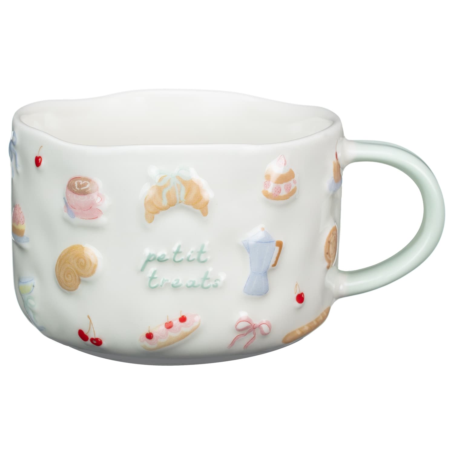 Adorned with charming motifs like croissants, cherries, bows, and more, this mug is playful and irresistibly chic.