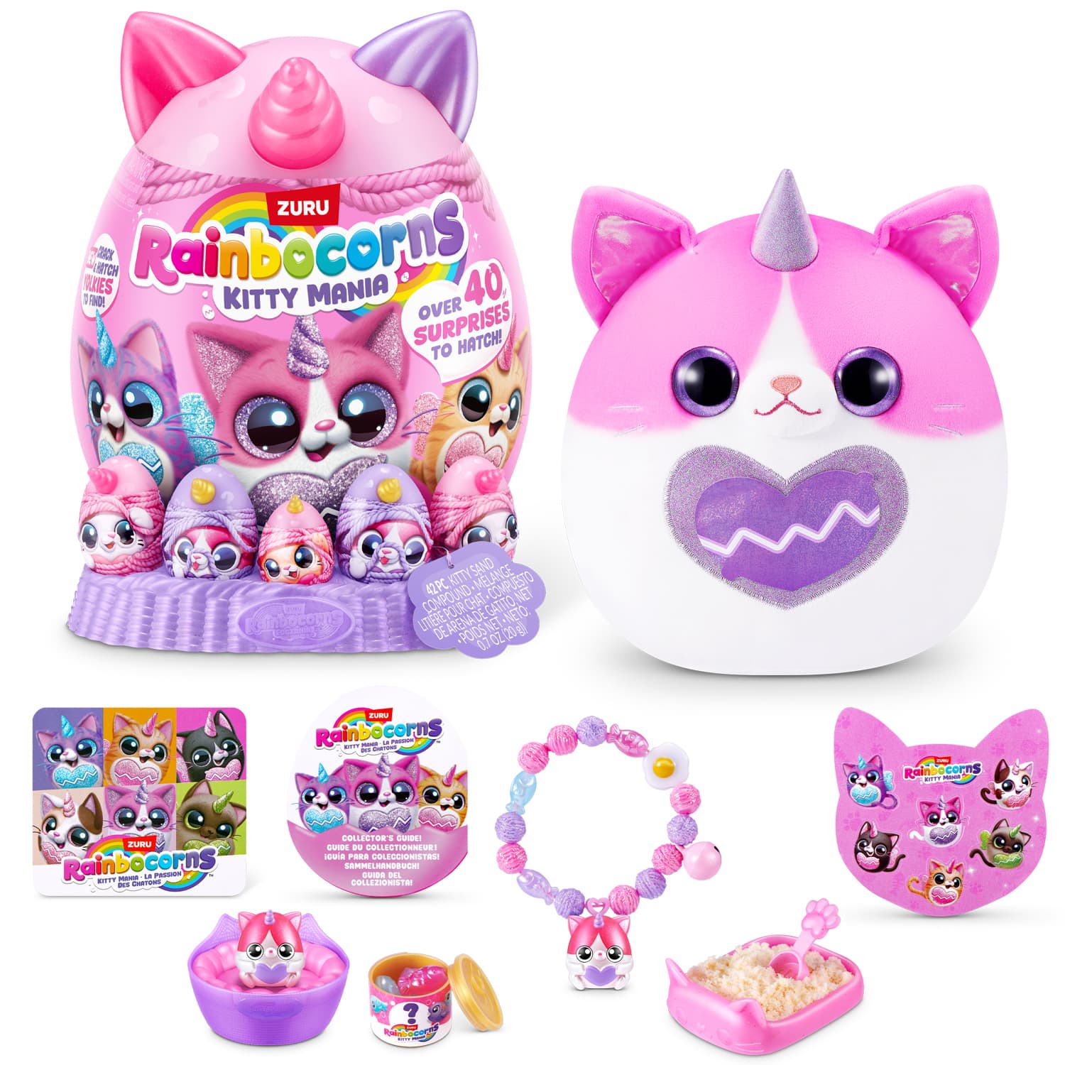 Here, kitty kitty! Meet Rainbocorns Kitty Mania! Hatch the egg to reveal a cuddly plush and over 40 surprises. But that’s not all - each Rainbocorns Kitty Mania includes a special Boo-Boocorn companion, adding even more fun to the adventure.