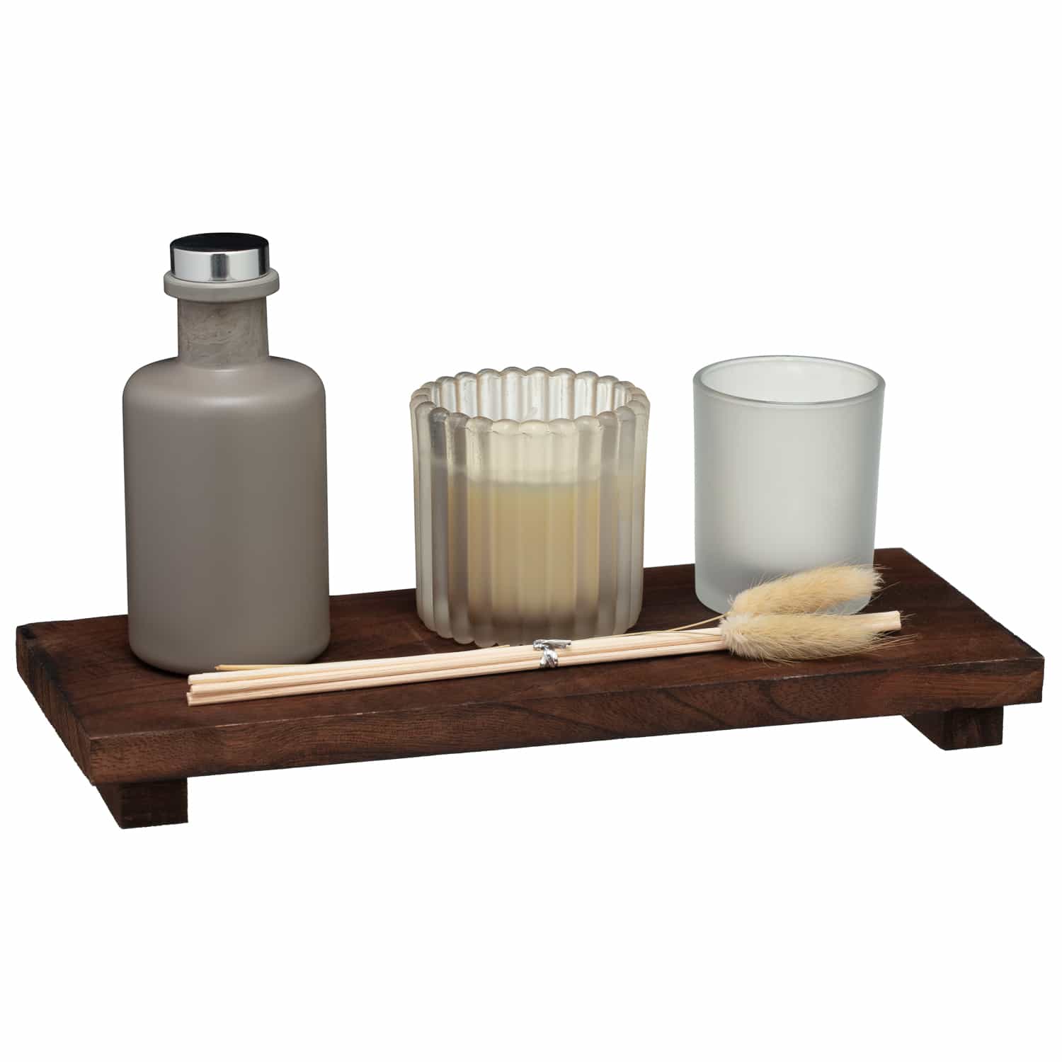 Raw Beauty Dark Wood Candle Diffuser Set.