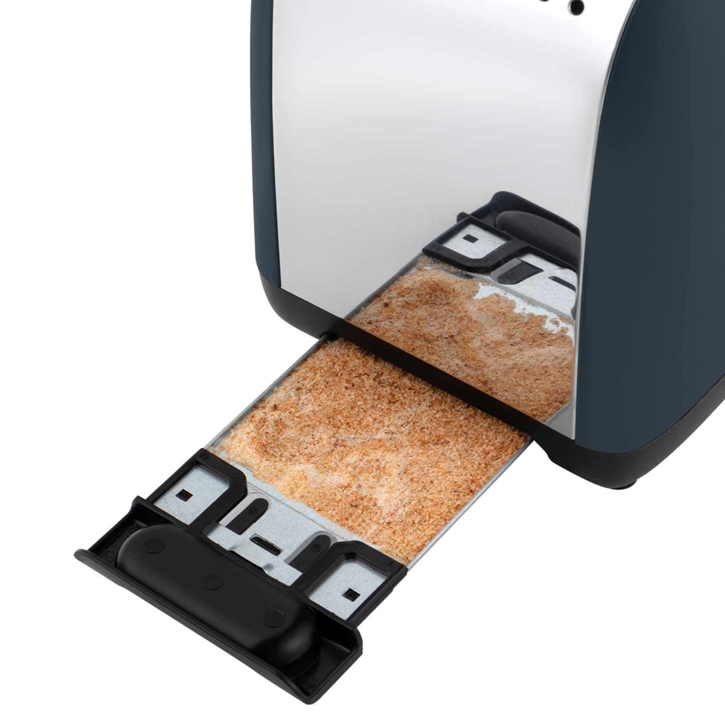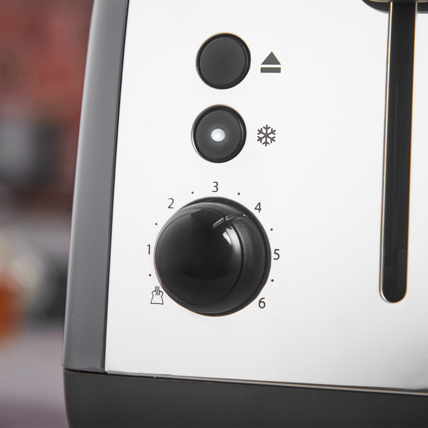 This grey toaster is perfect for those looking to make a statement in their home and the chrome accents add a hint of modern style to the outer casing.