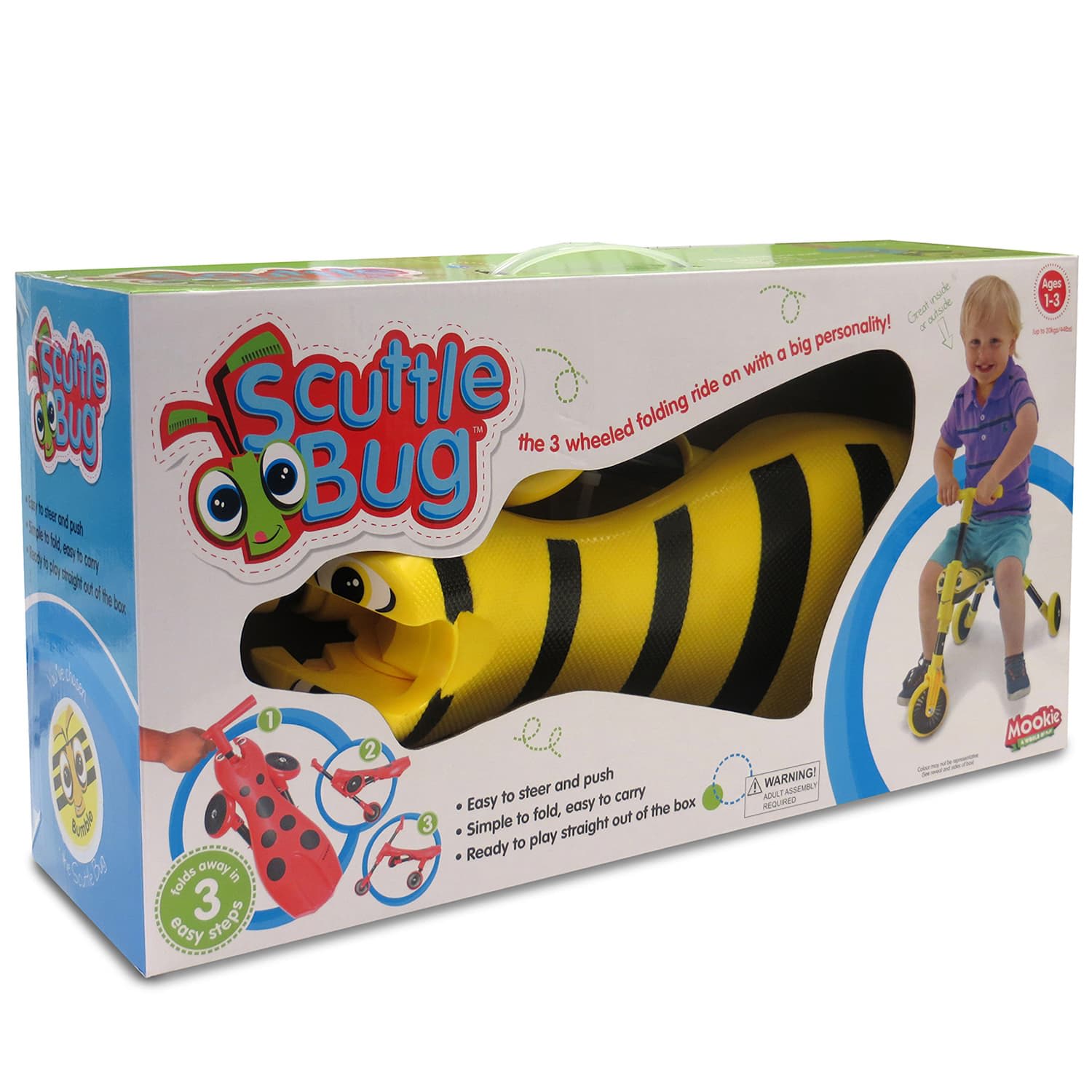 The ScuttleBug is a unique foot to floor ride-on with three wheels for added stability and is ideal for toddlers aged 1 year and over.