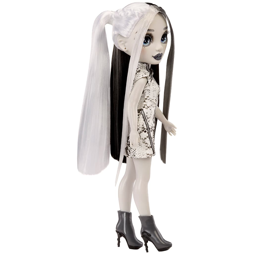 Each doll in this signature greyscale collection features a unique design and palette that completes he rainbow in black, white, and every shade in between.