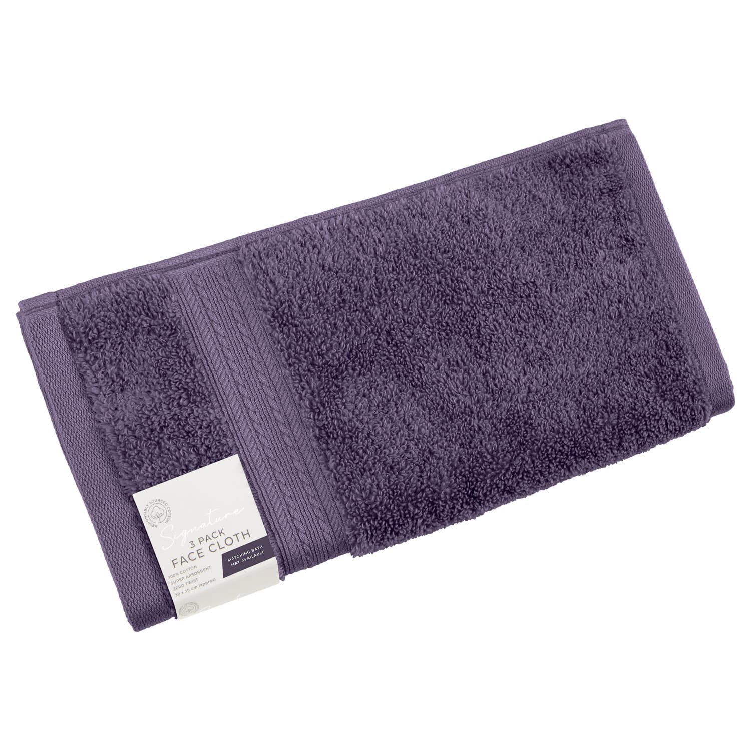 Signature Face Cloths 3pk - Plum