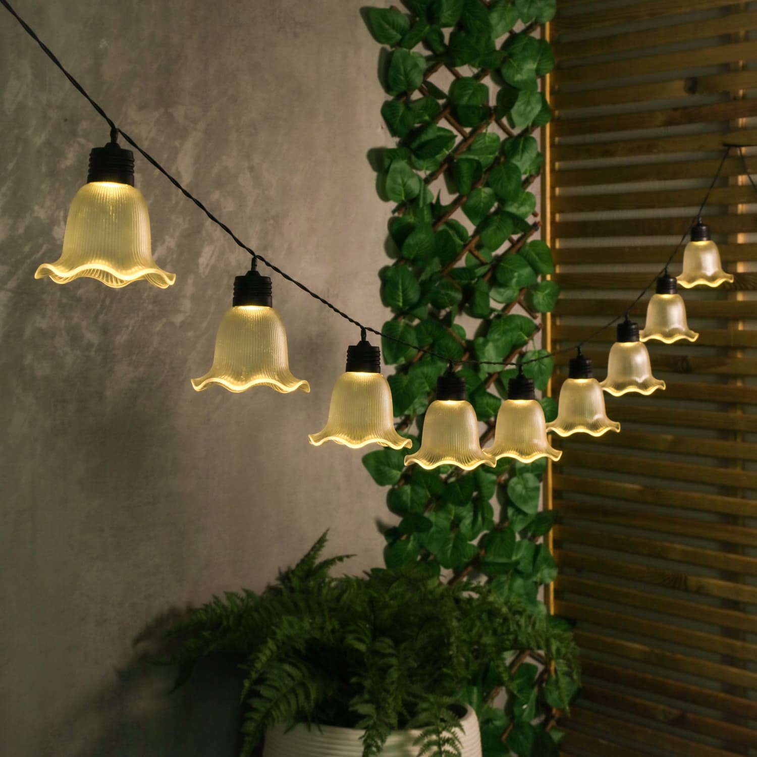 Illuminate your garden with this Solar Powered 10 Ribbed Tulip String Light.