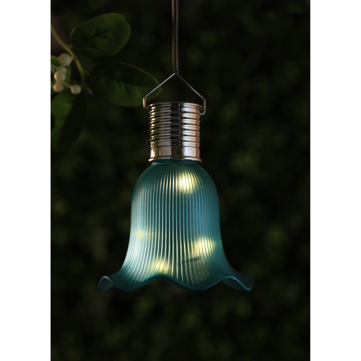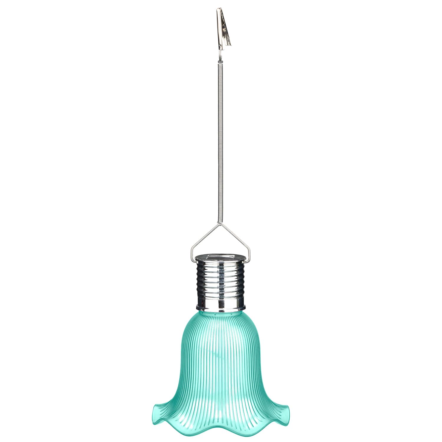 Solar Powered Ribbed Tulip Hanging Light - Green.