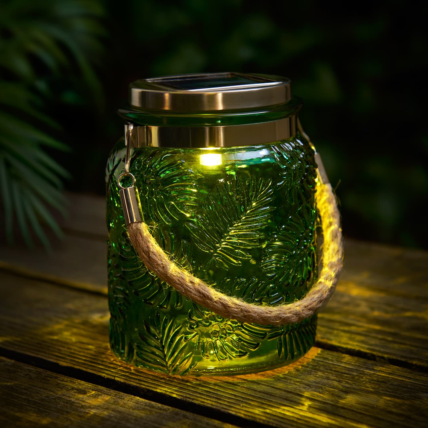 Solar Powered Tropical Glass Lantern - Green.