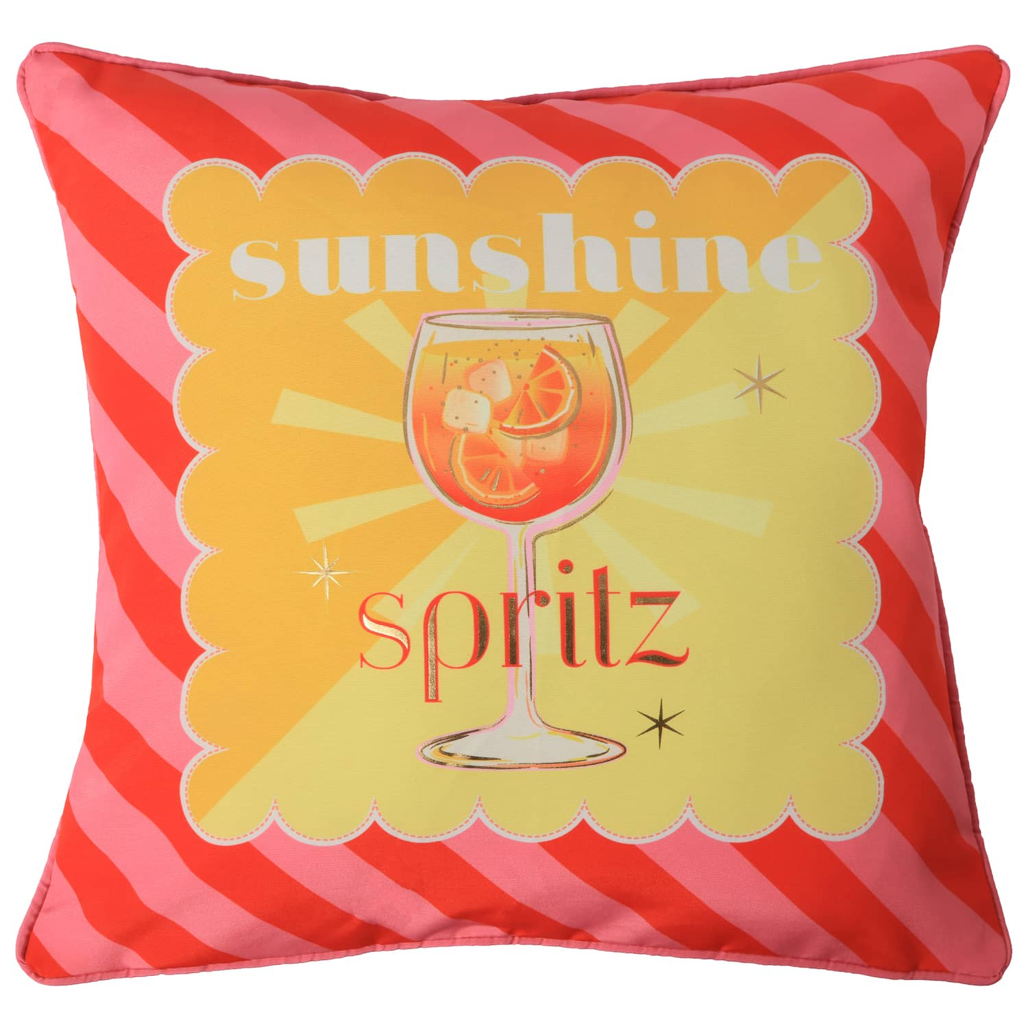 Featuring a chic pink and white striped design and a colourful spritz print, this cushion is the perfect accessory for your outdoor seating and dining areas.