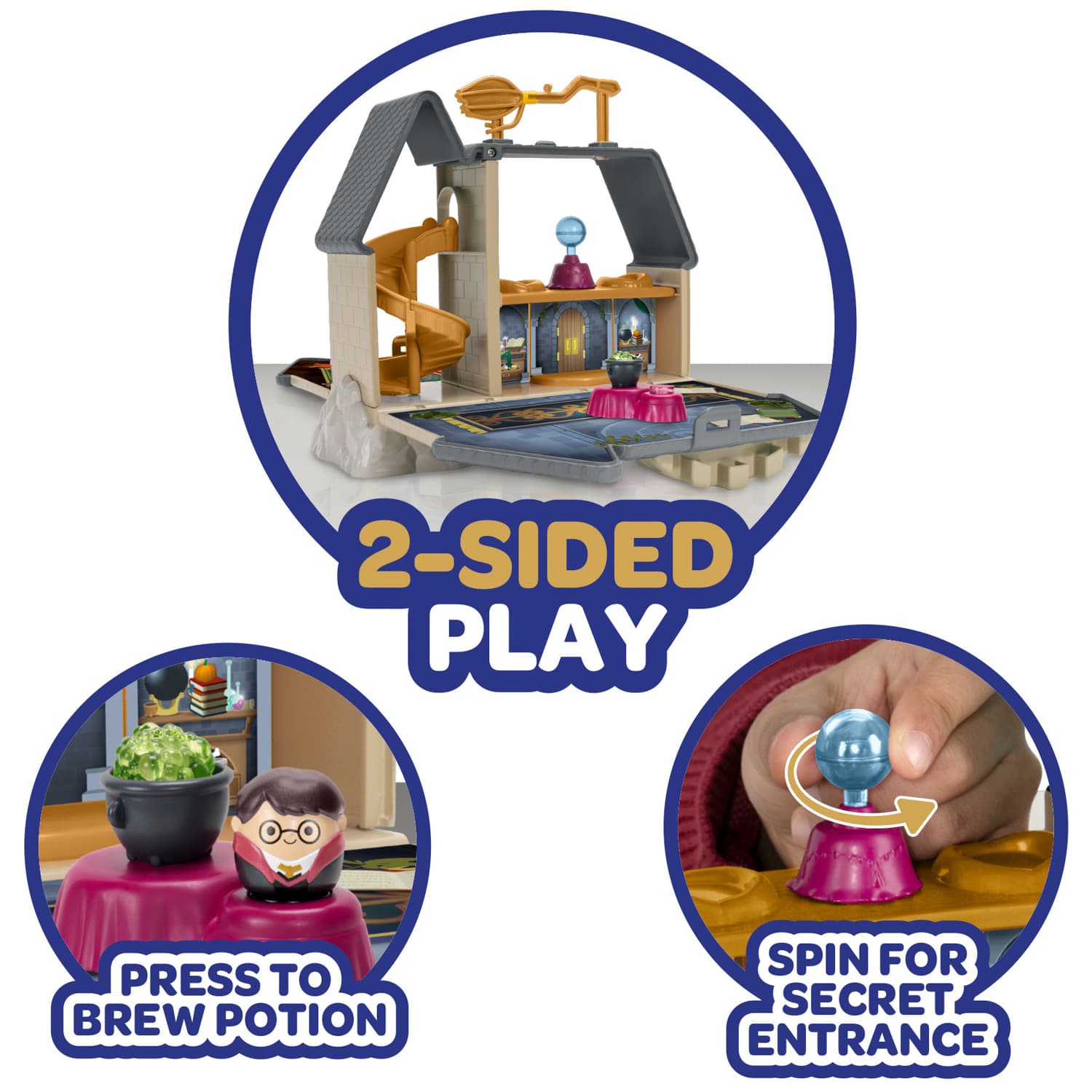 Accessorise your Mini-Squish with accessories like a Gryffindor Scarf, and play, display, or store them in the highly detailed Hogwarts Castle: descending down the Grand Staircase, flying over Hogwarts, bubbling potions—they can even spin the crystal ball to activate a secret passage!
