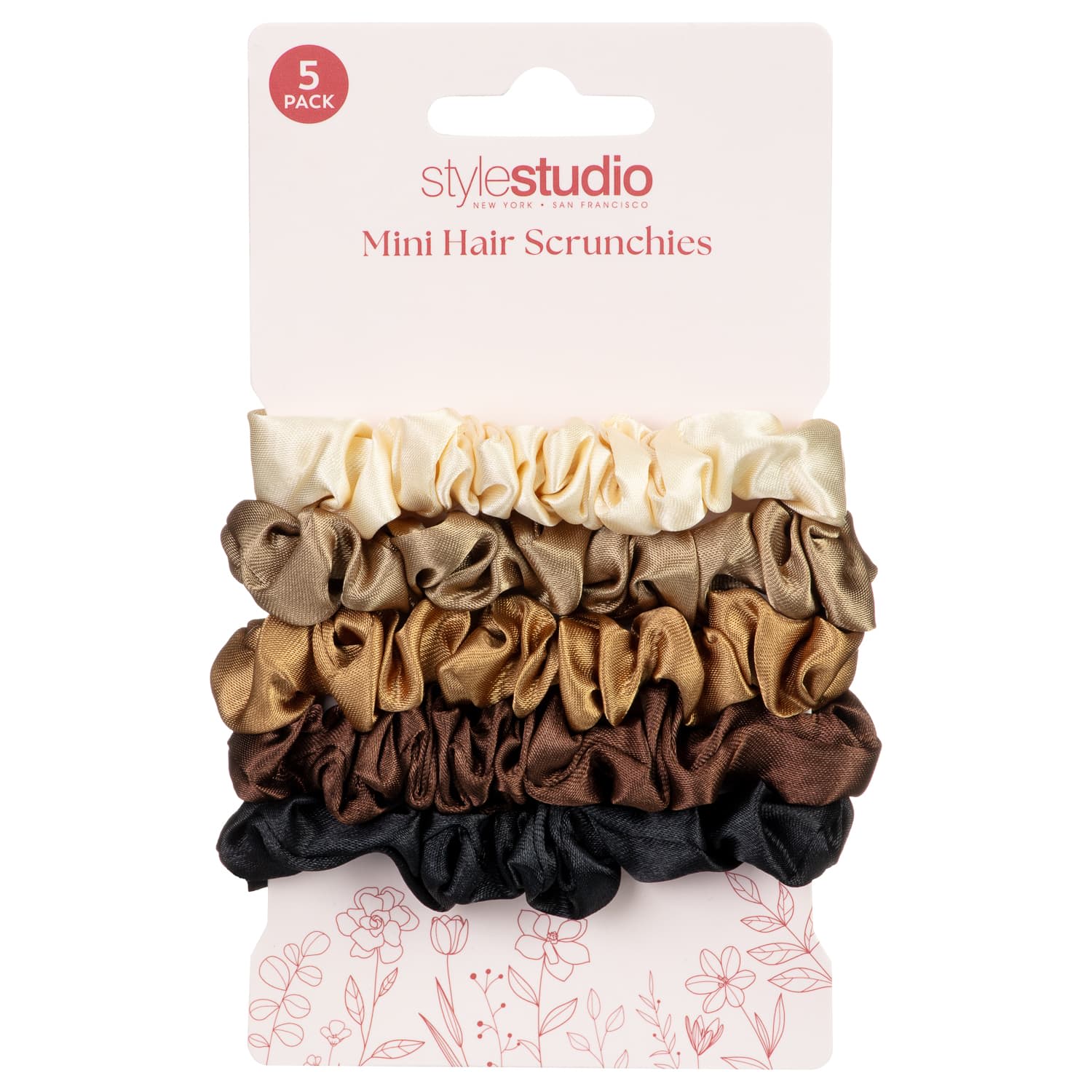 Style Studio Mini Hair Scrunchies 5pk - Brown.