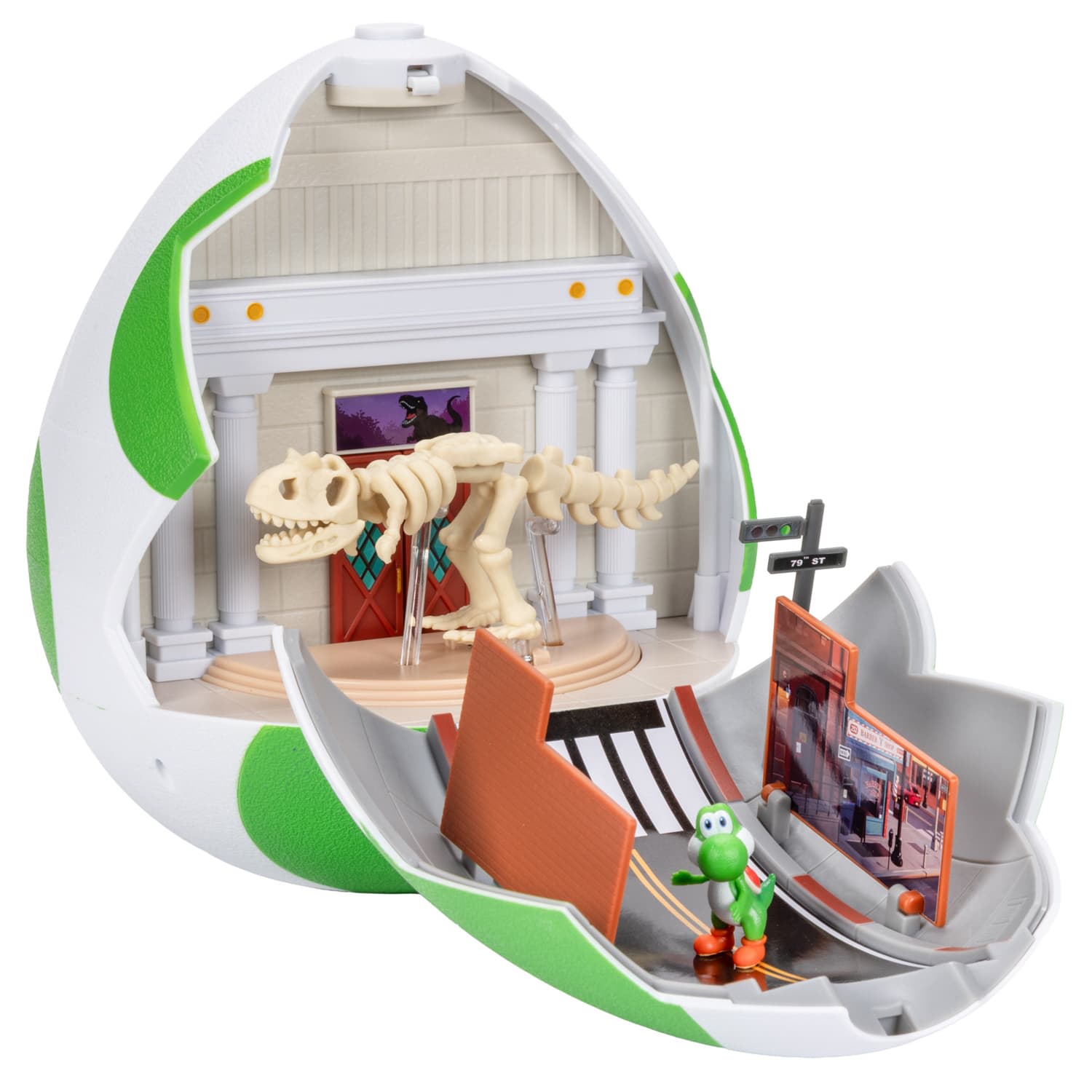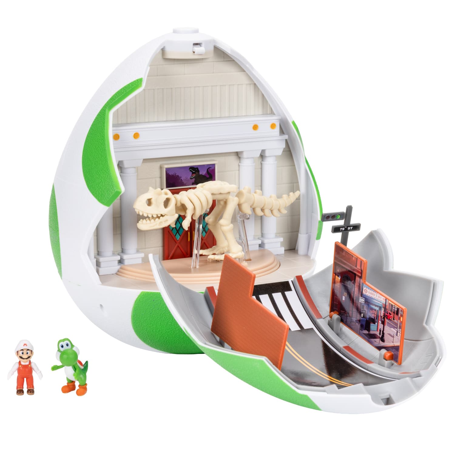 Disguised as a fully-enclosed green Yoshi egg, the two panels open up to reveal movie moments as we meet Yoshi and discover how he transports to meet Mario - it's an adventure at every turn!