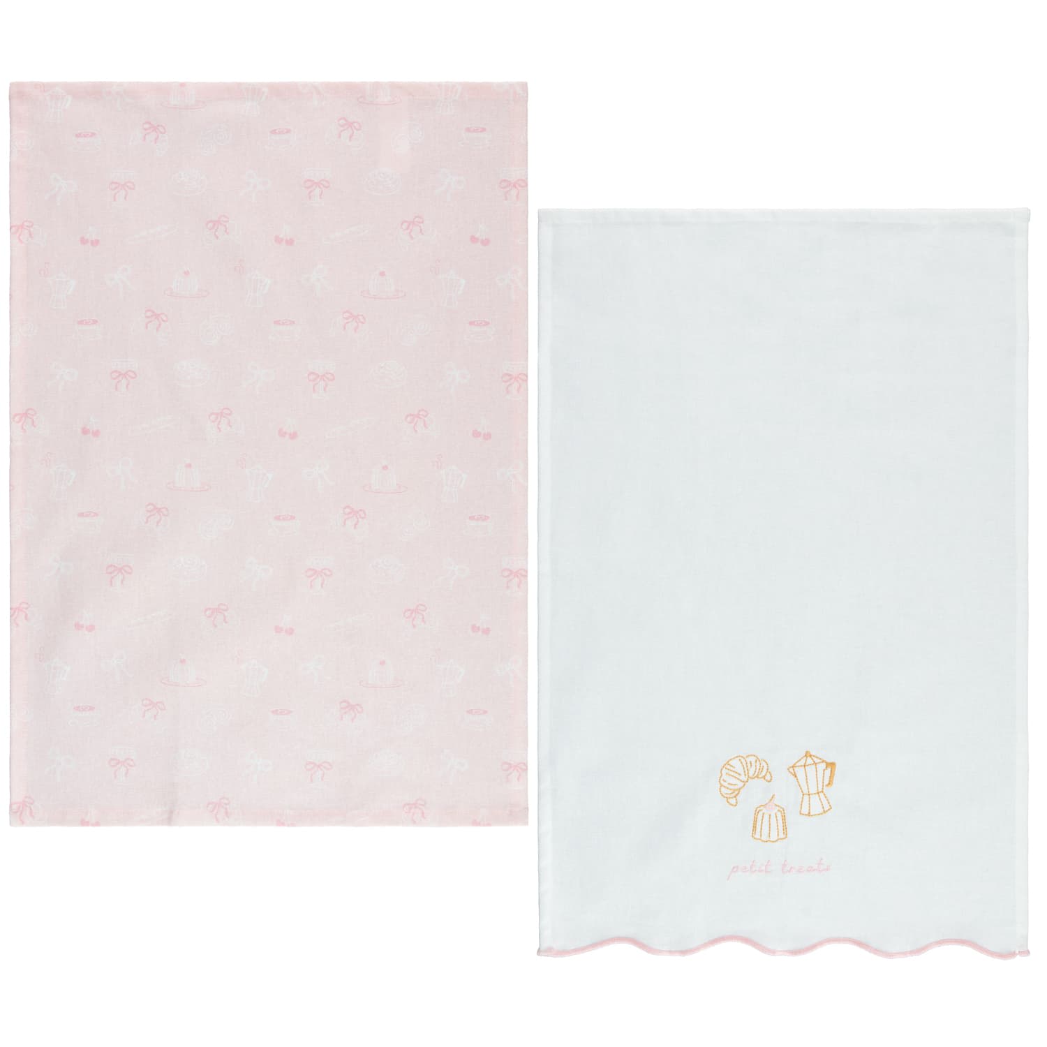 Both tea towels feature chic motifs like bows, cafetieres, and croissants, giving your kitchen a Parisian vibe.