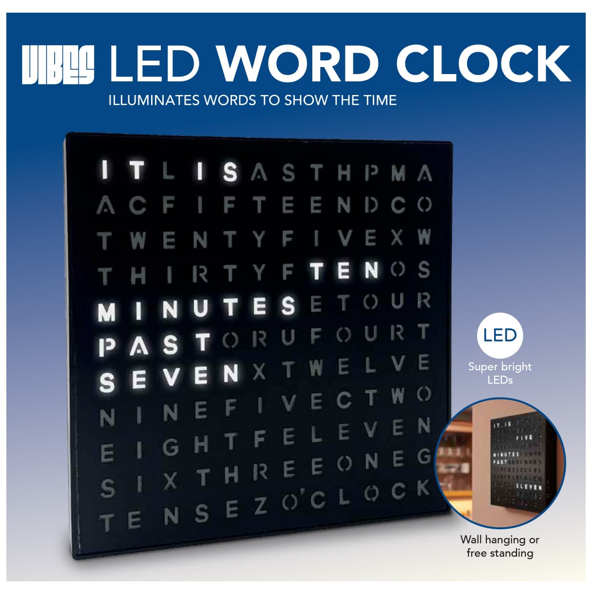 This modern time piece combines sleek design with a unique twist - time is displayed in stylish words - making this not only a clock but a fashionable piece of décor.