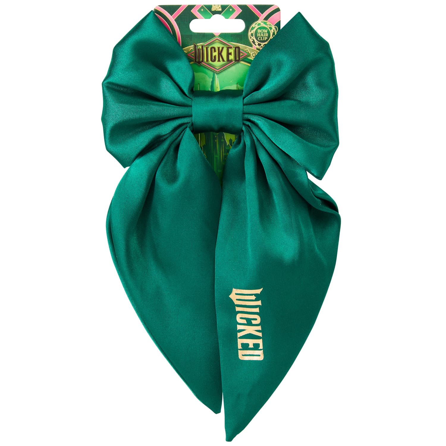 Featuring a vibrant green shade and a gold foil Wicked motif, this Bow Hair Clip is perfect for any Elphaba fan to accessories their look.